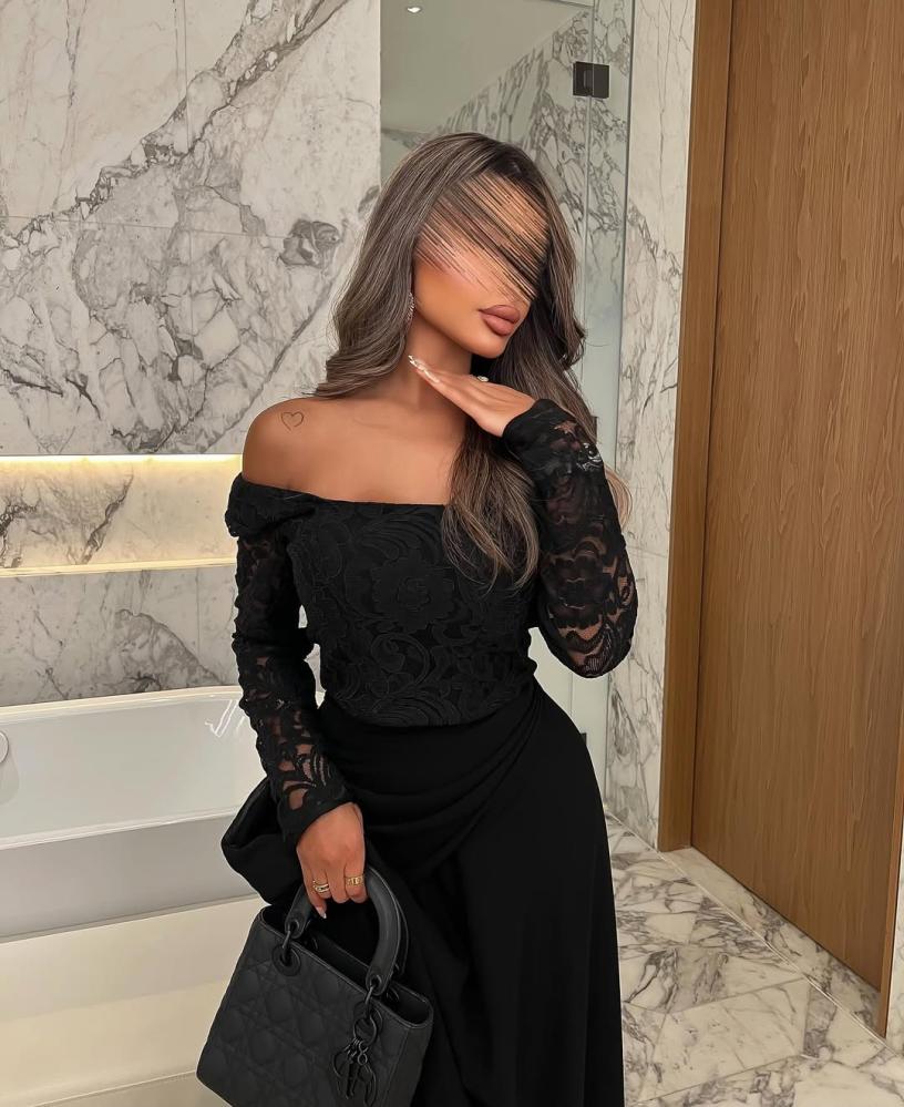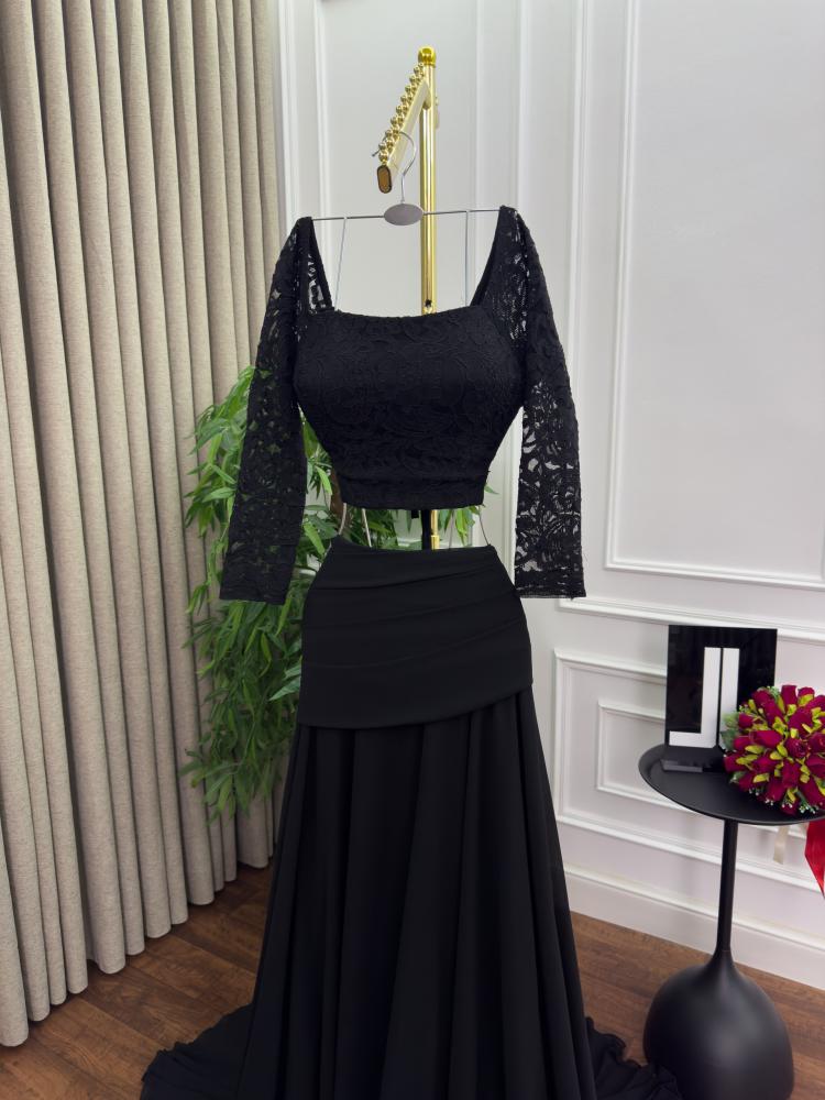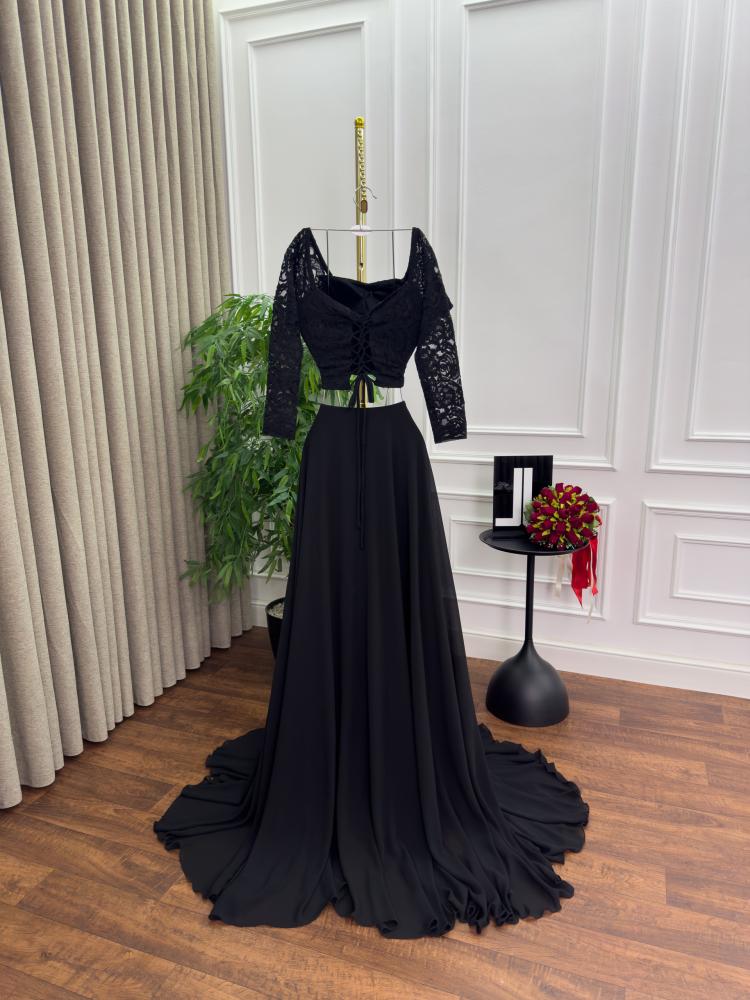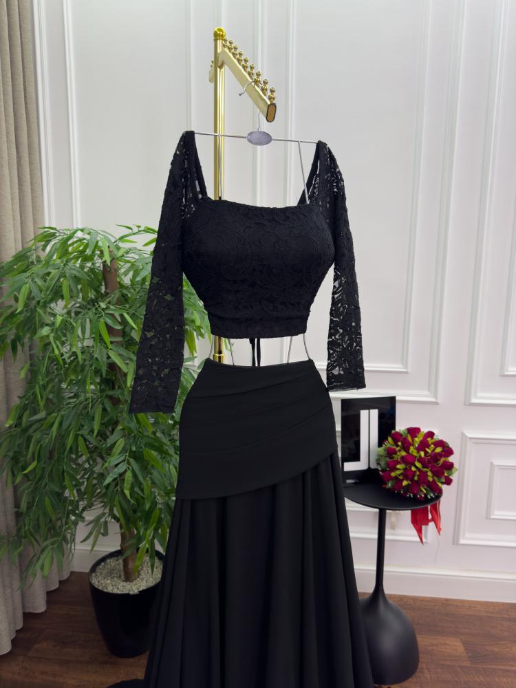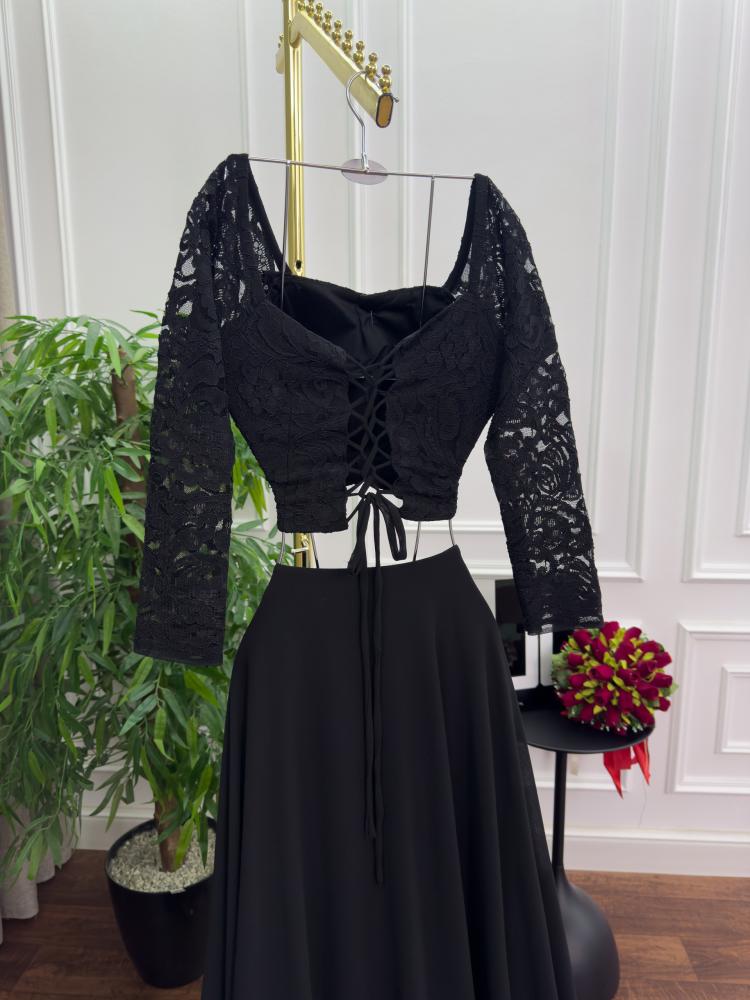 فستان سهره اللون اسود قطعتين جورجيت دانتيل من متجر جوهره LA