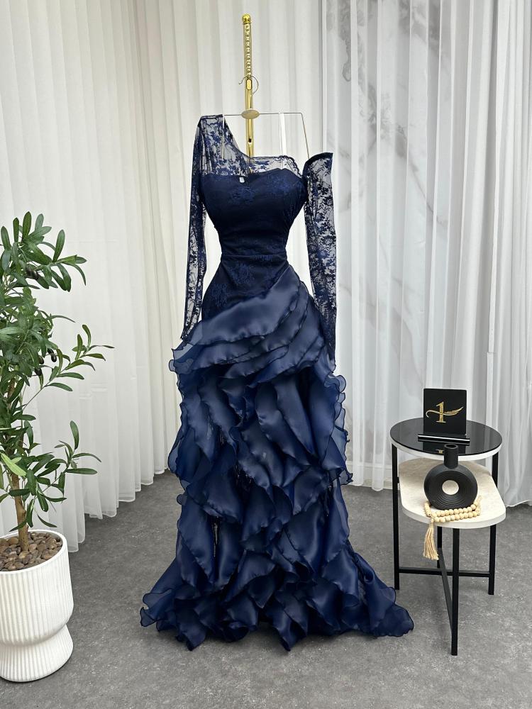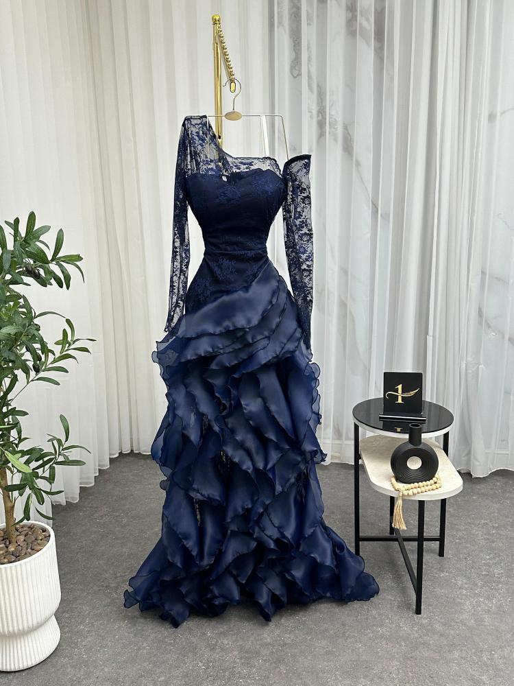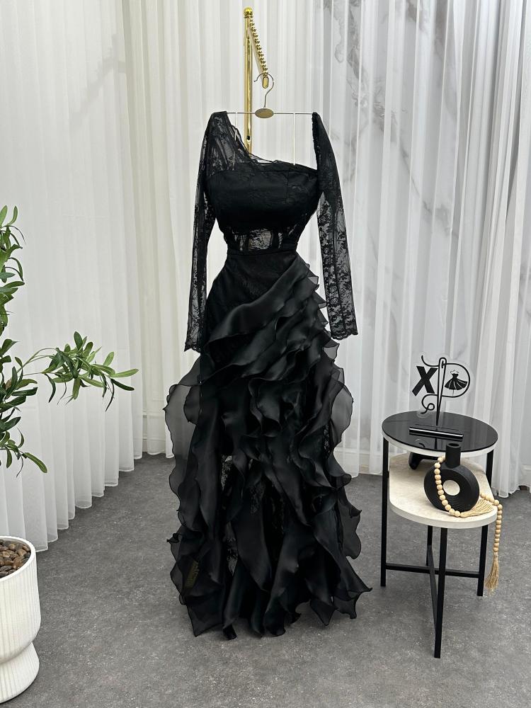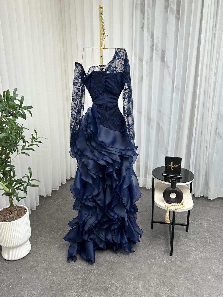 فستان سهره اللون اسود و كحلي و عودي نوع القماش دانتيل كوري الاصلي مع اورنجزا من متجر جوهره NO X