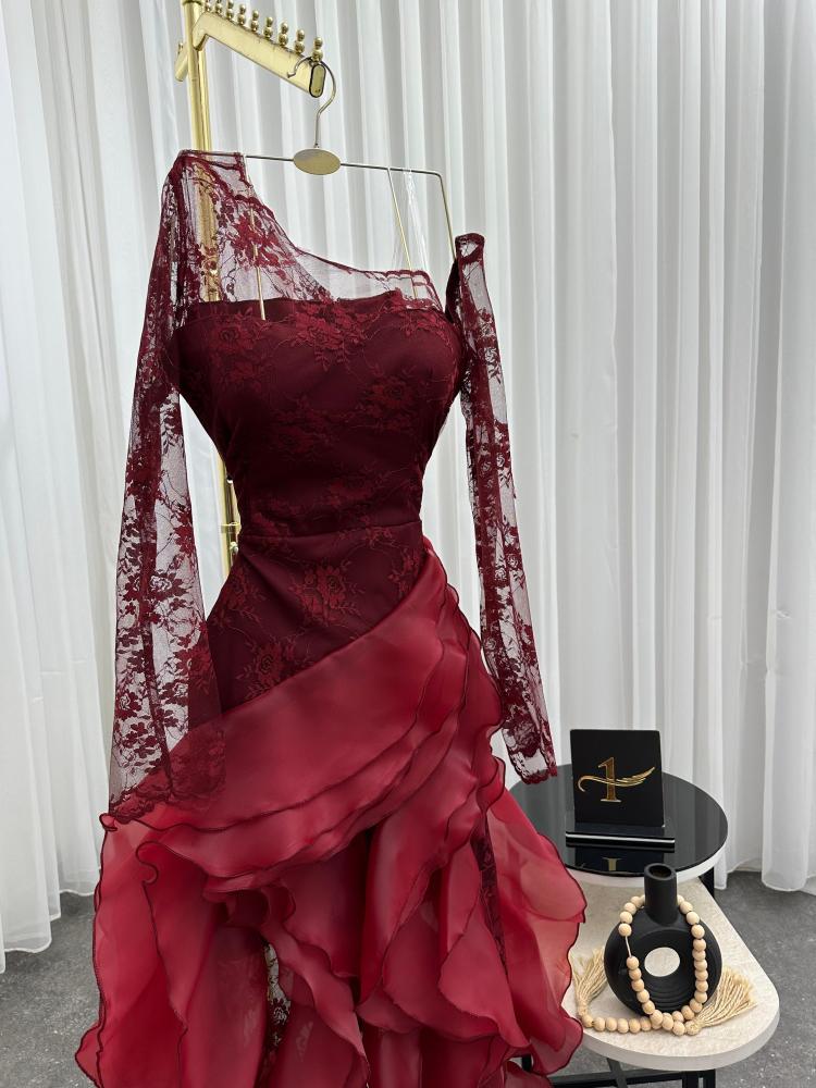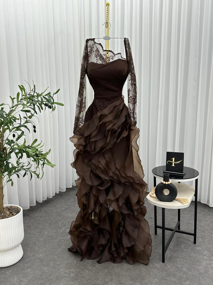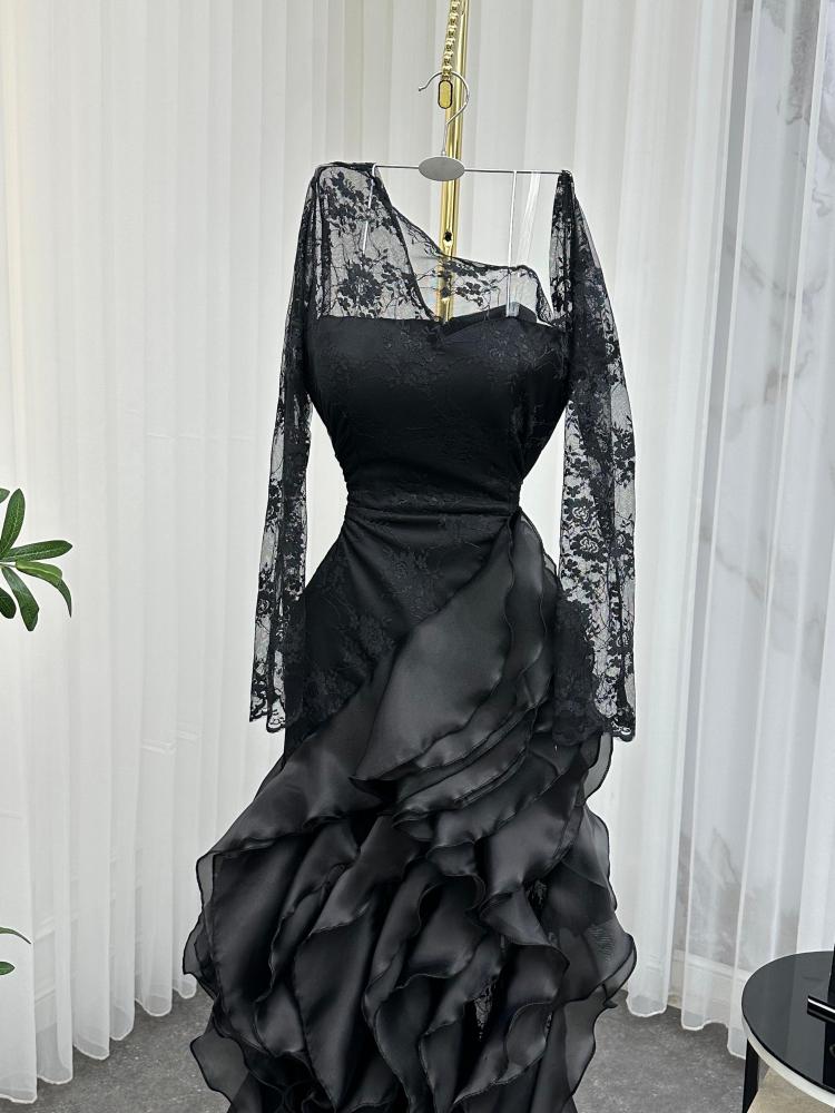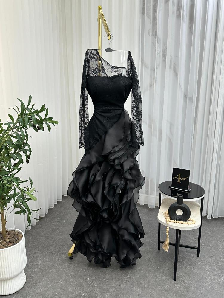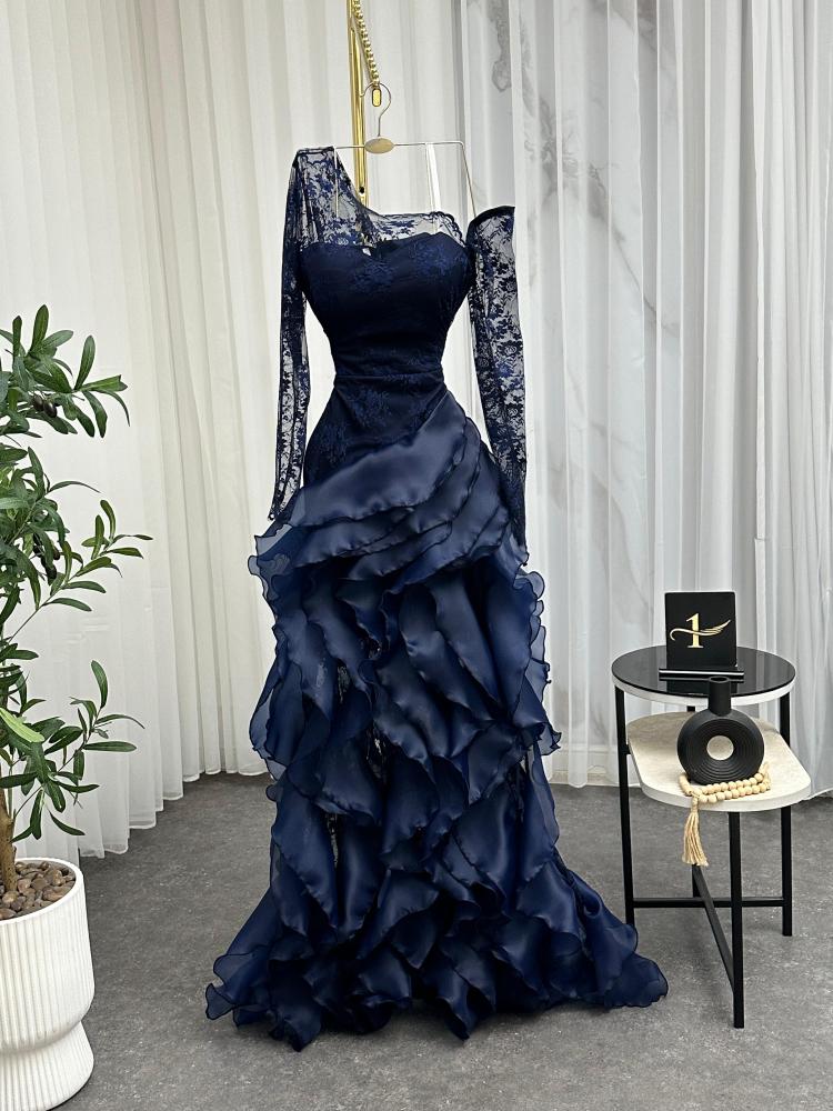 فستان سهره اللون اسود و كحلي و عودي نوع القماش دانتيل كوري الاصلي مع اورنجزا من متجر جوهره NO X