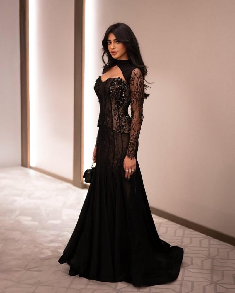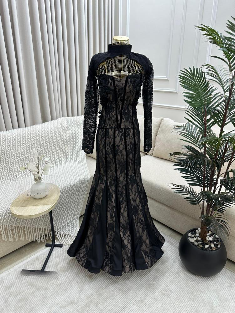 فستان العيد كولكشن العيد الجديد فستان مكون من قطعتين خامه تفته و دانتيل فستان بأكمام طويله ضيق وقصه السمكه المناسبه :سهره خاصه-فستان العيد -فستان خطوبه