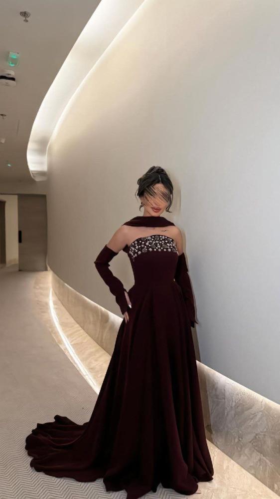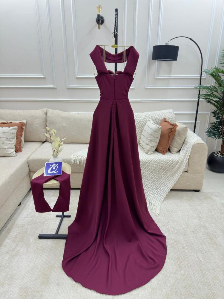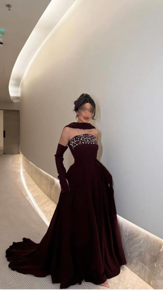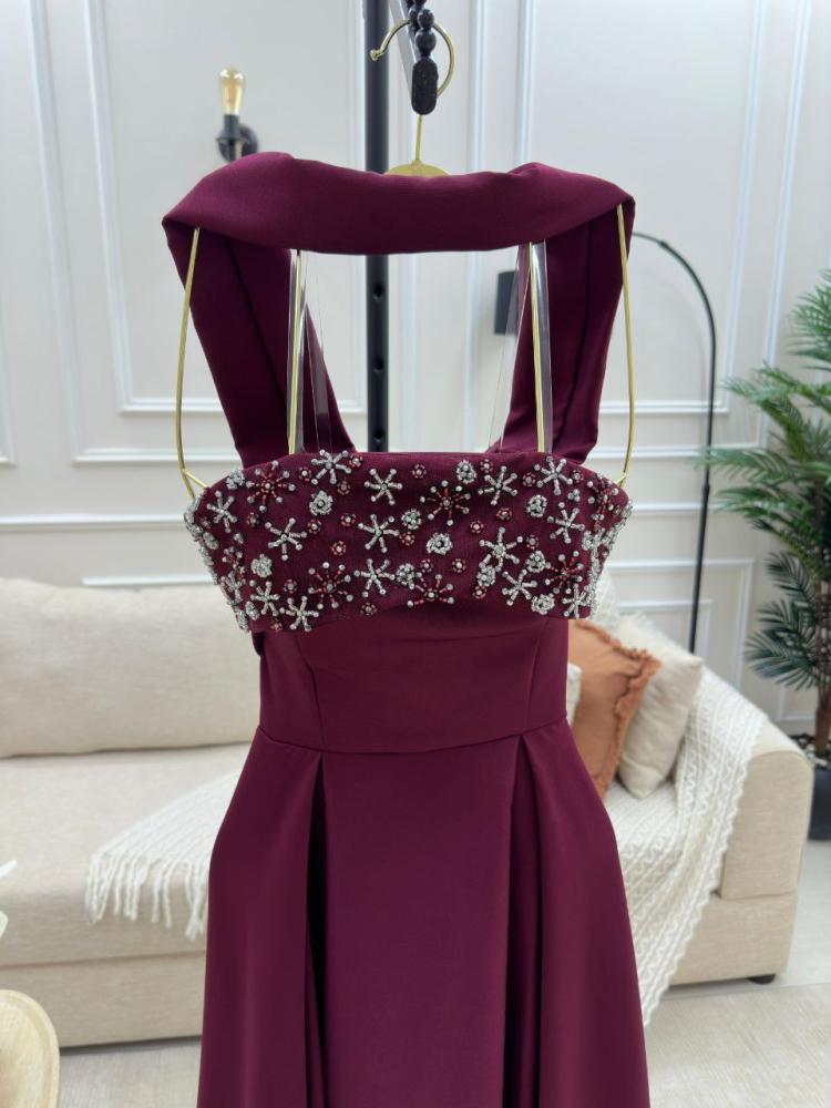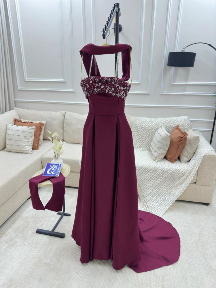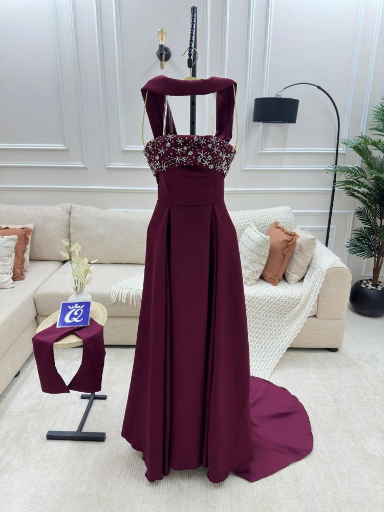 فستان سهره اللون عنابي باربي دبل كلووش مع تطريز من متجر جوهره QU