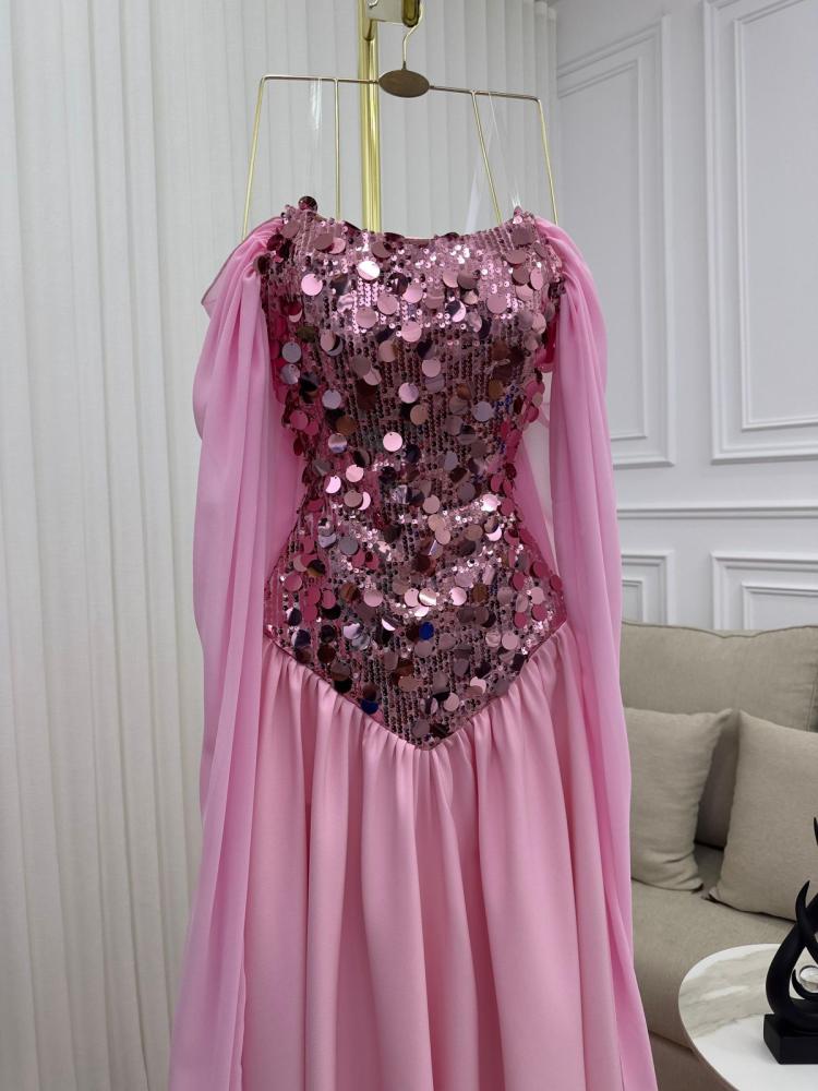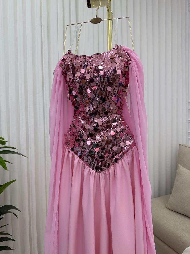 فستان سهره اللون زهري ناعم الخامة:تفته مع شيفون كلفة جاهزة مطرزة K