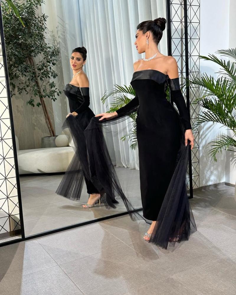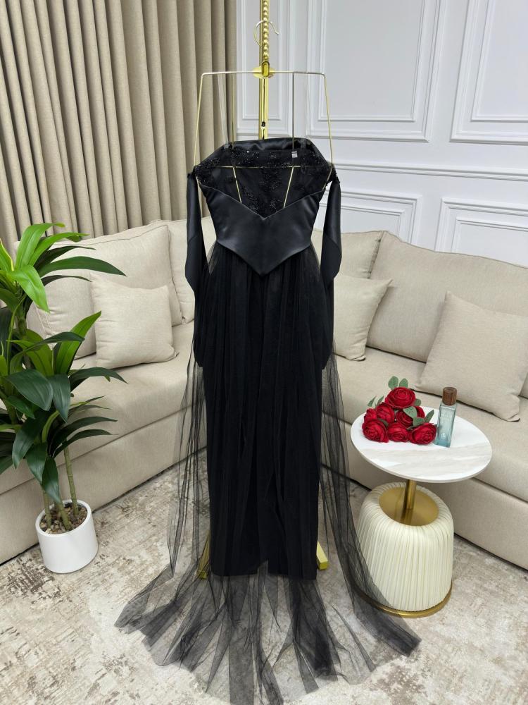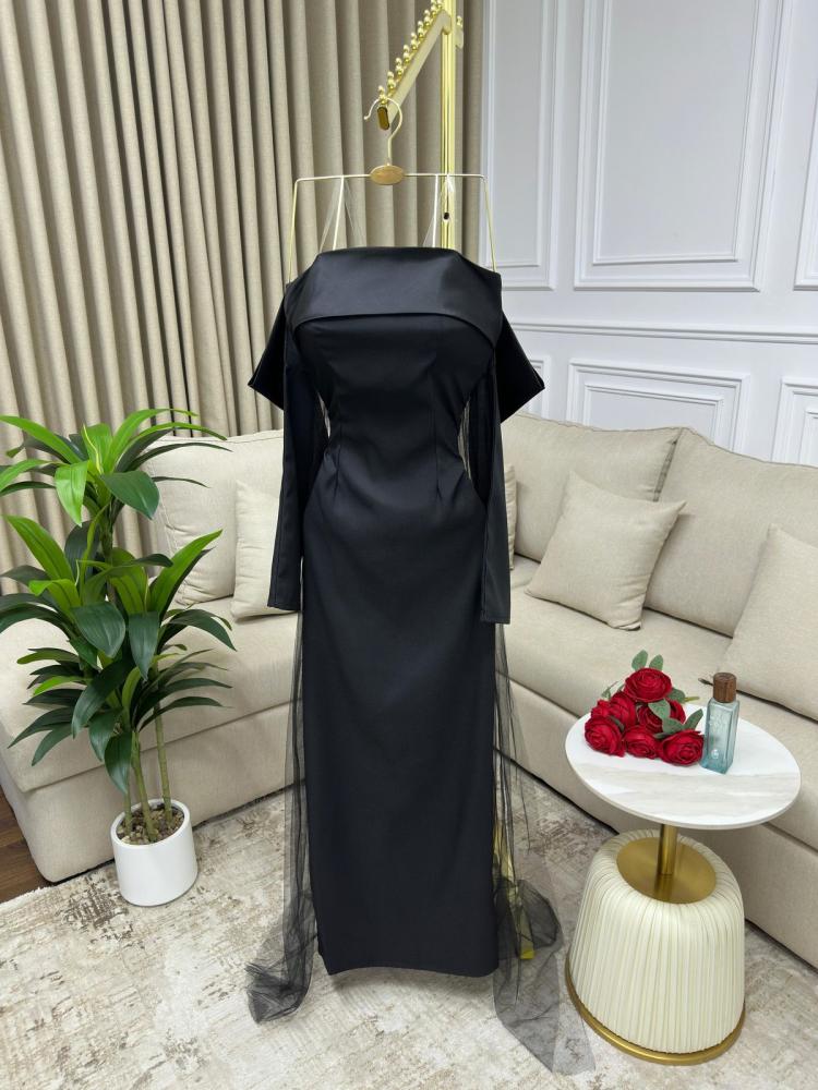 فستان سهره الخامة باربي كلفه جاهزة اللون اسود K