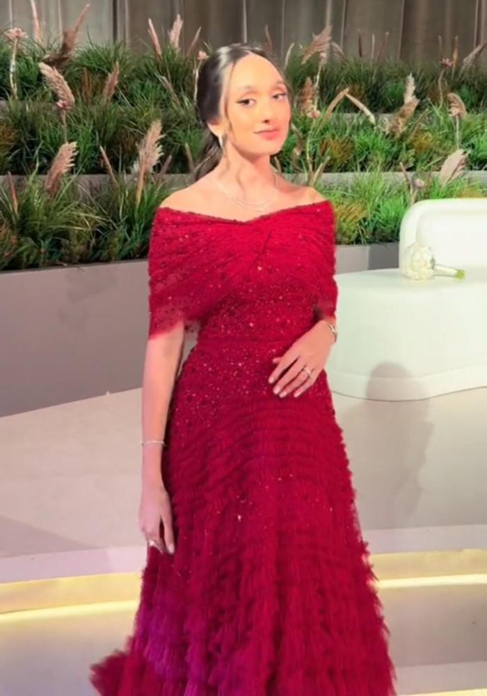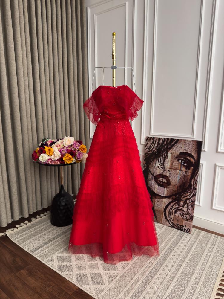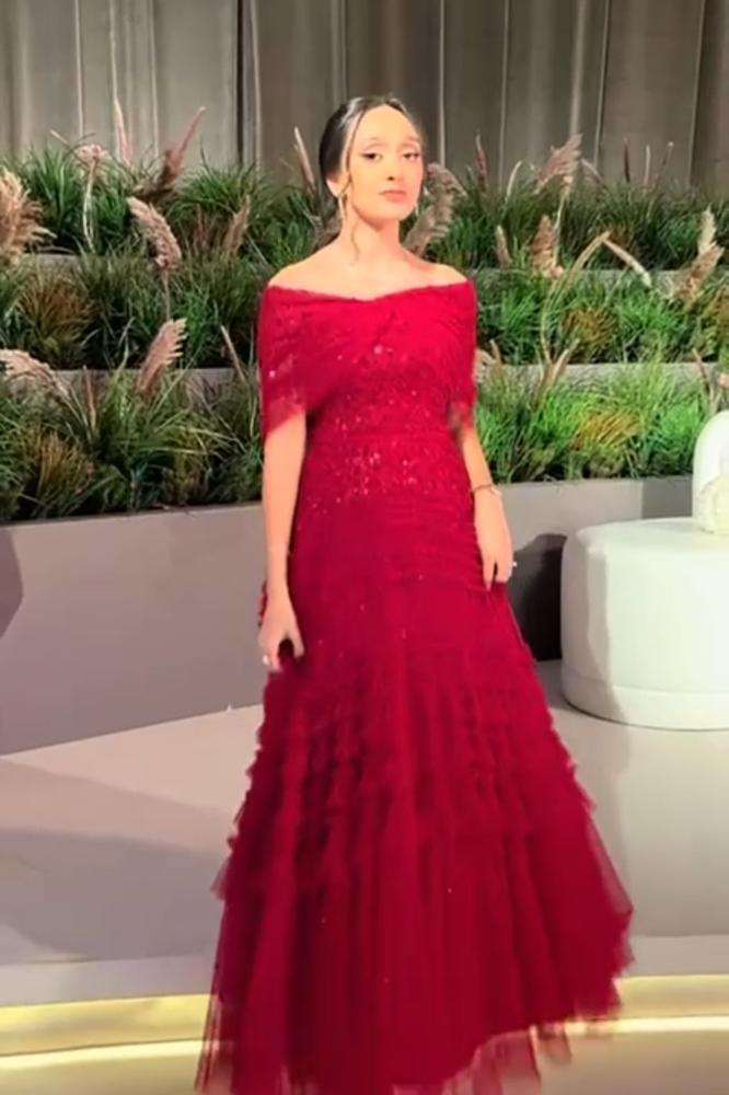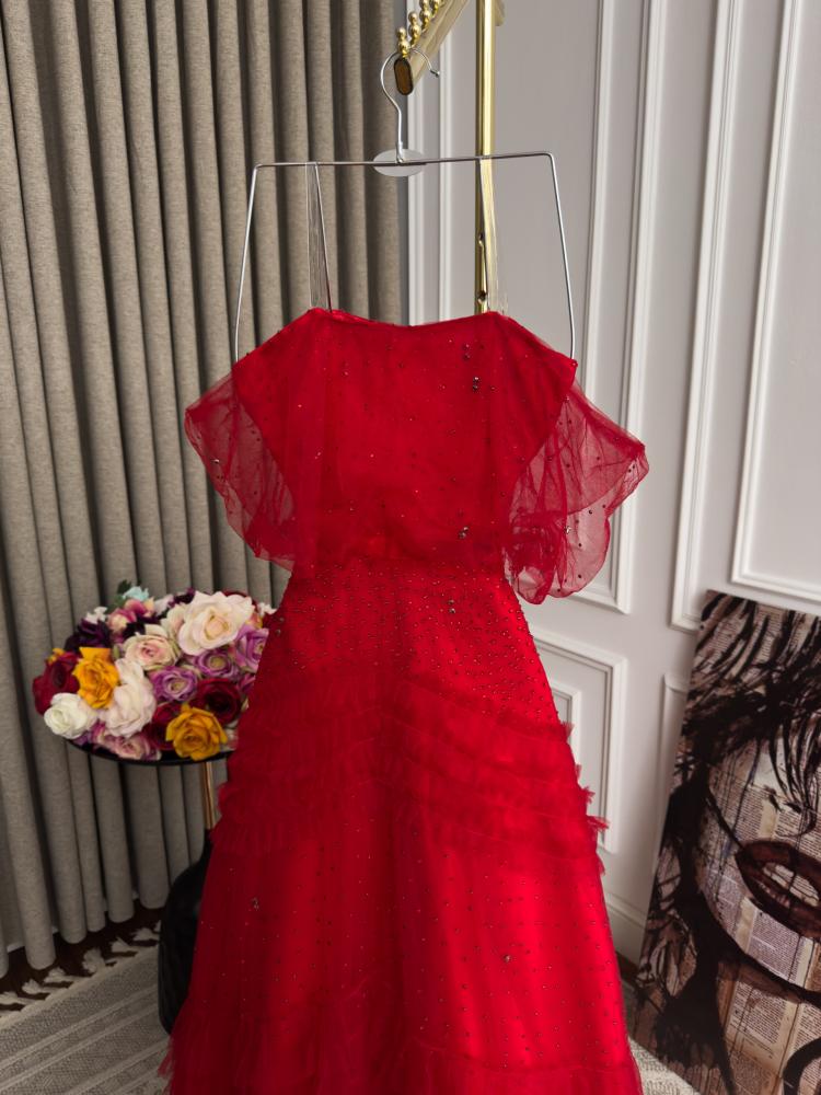 فستان سهره اللون احمر تفته سله تل مطرز من متجر جوهره JO
