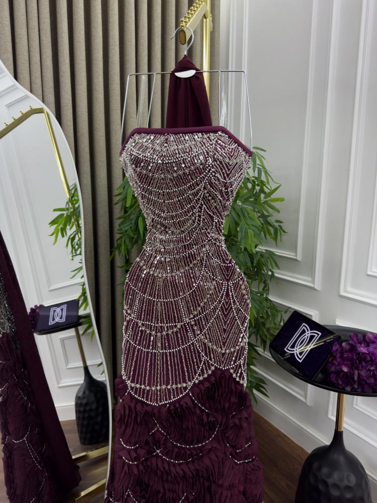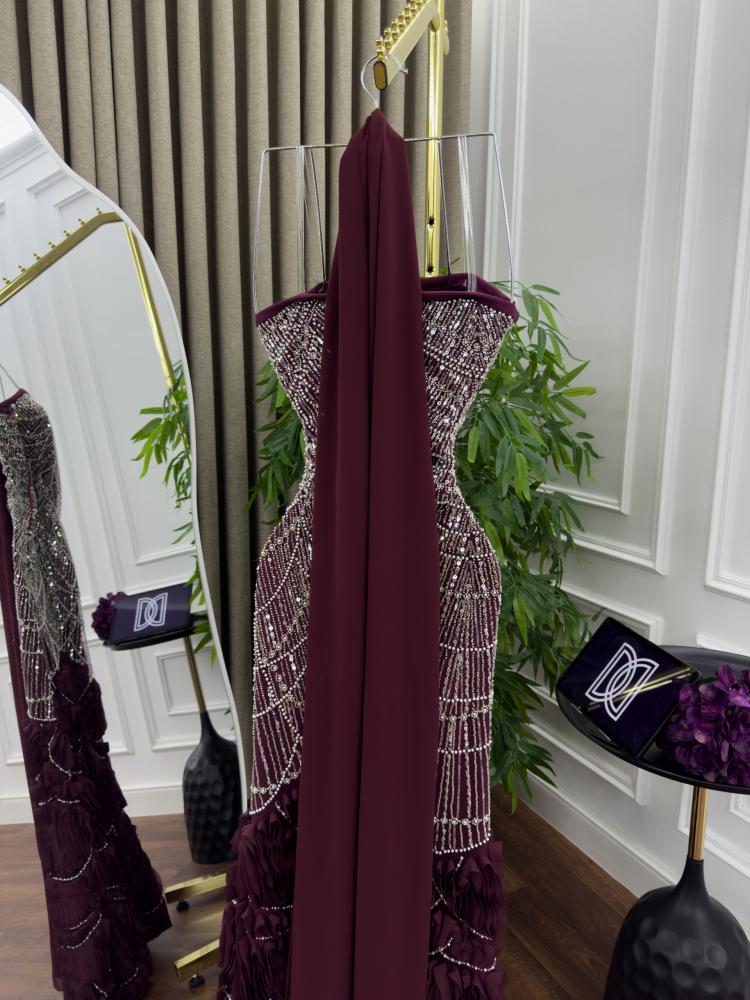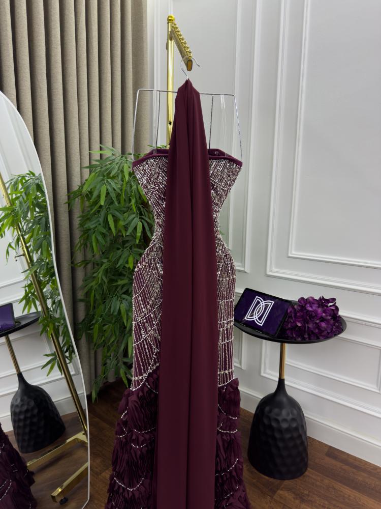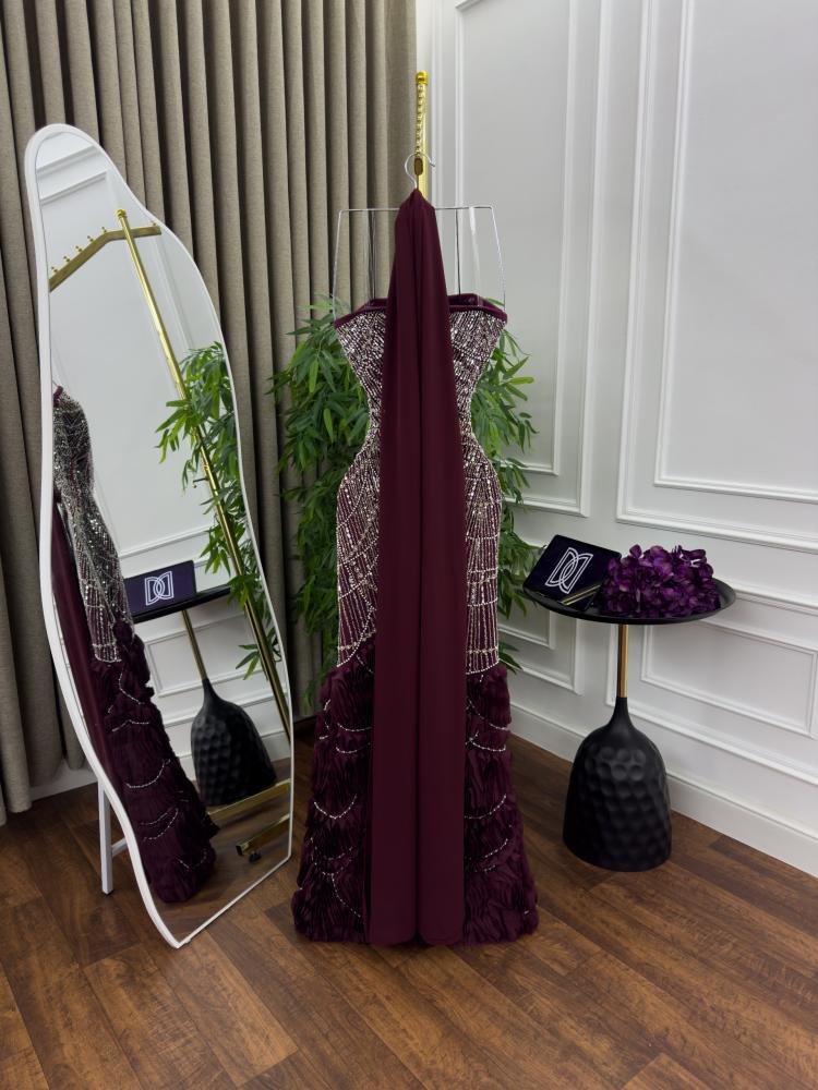 فستان سهرة اللون عنابي كلفه تل تطريز خرز من متجر جوهره D