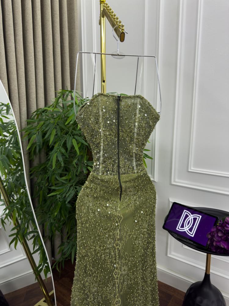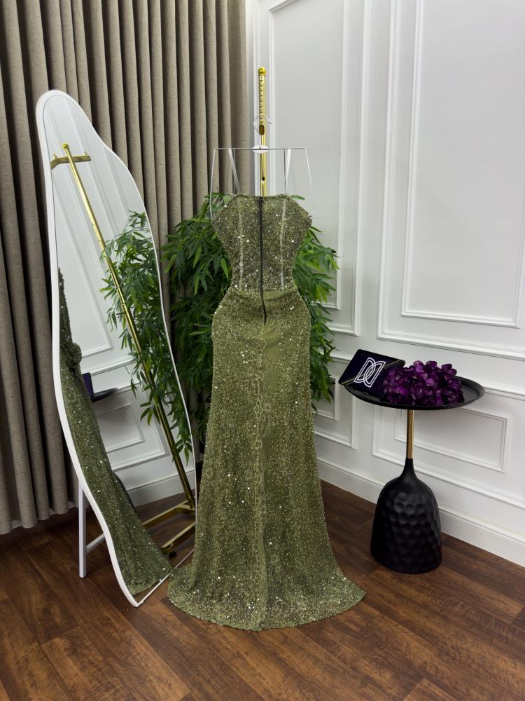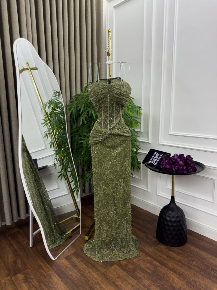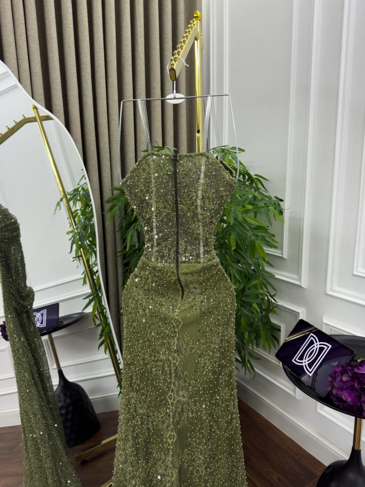 فستان سهره اللون اخضر فستان سهره دانتيل تطريز معه شال من متجر جوهره D