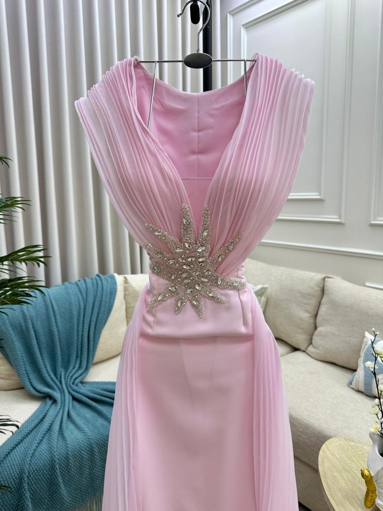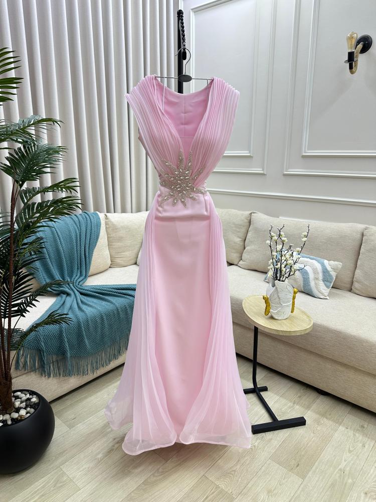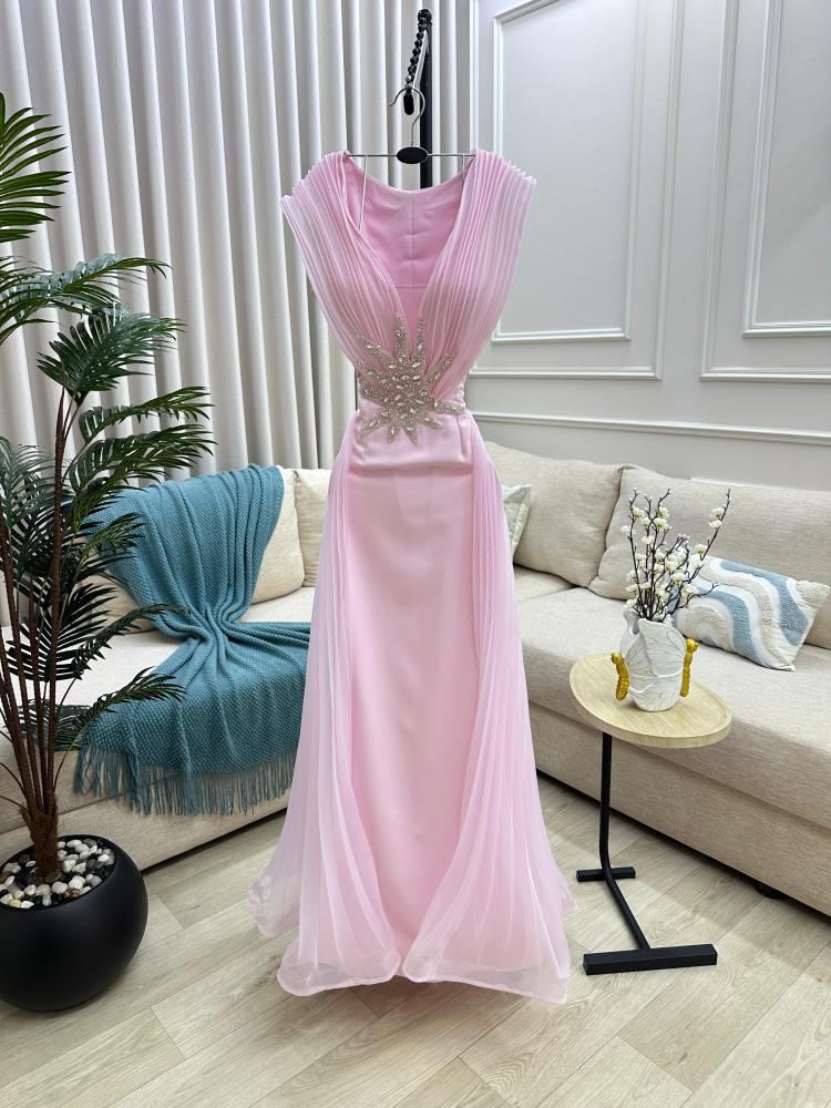 فستان سهره اللون وردي نوع القماش باربي تطريز راقي من متجر جوهرهFH