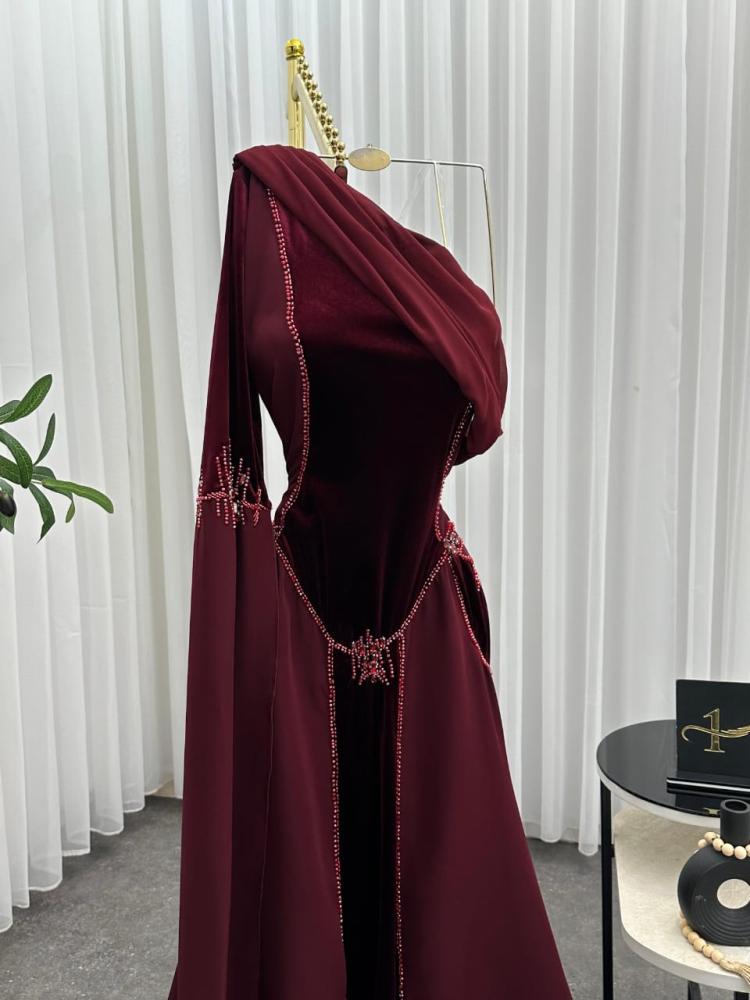 فستان سهره اللون برغندي الخامة: باربي قطيفه من متجر جوهره NO
