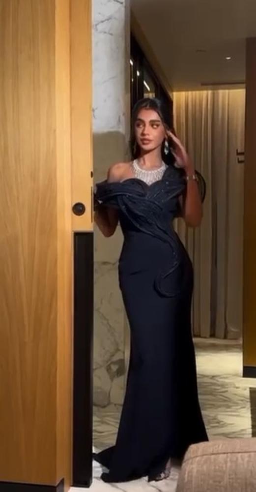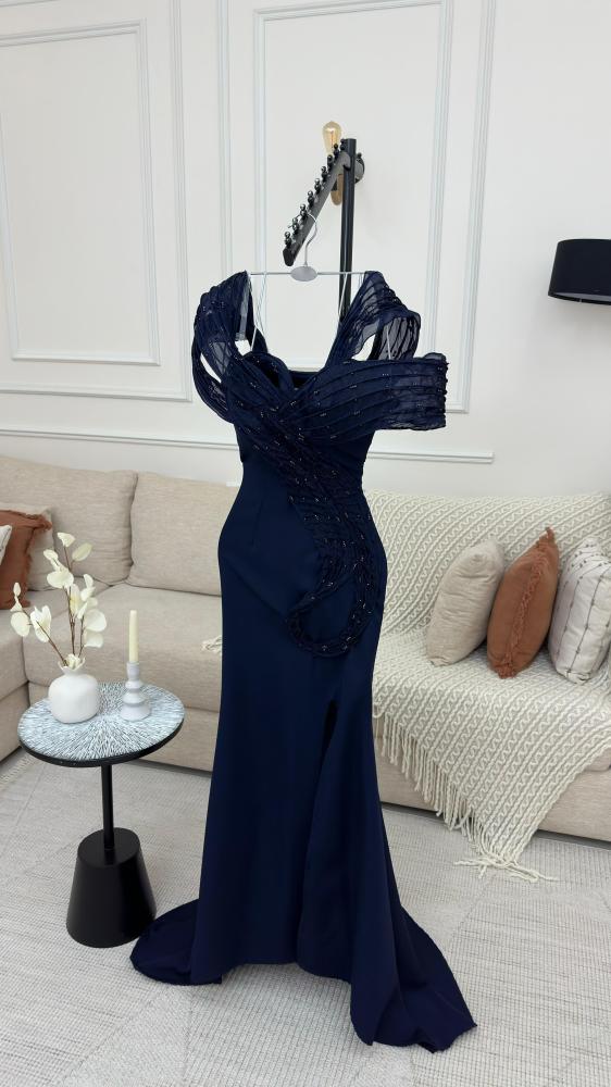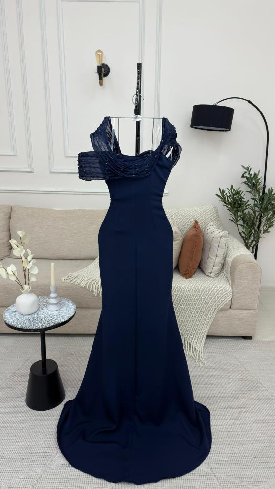 فستان سهره كحلي خامه باربي وتطريز يدوي من متجر جوهره MN
