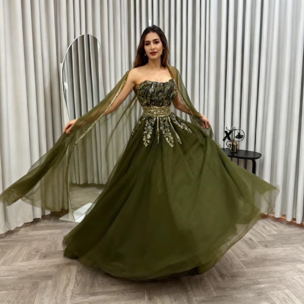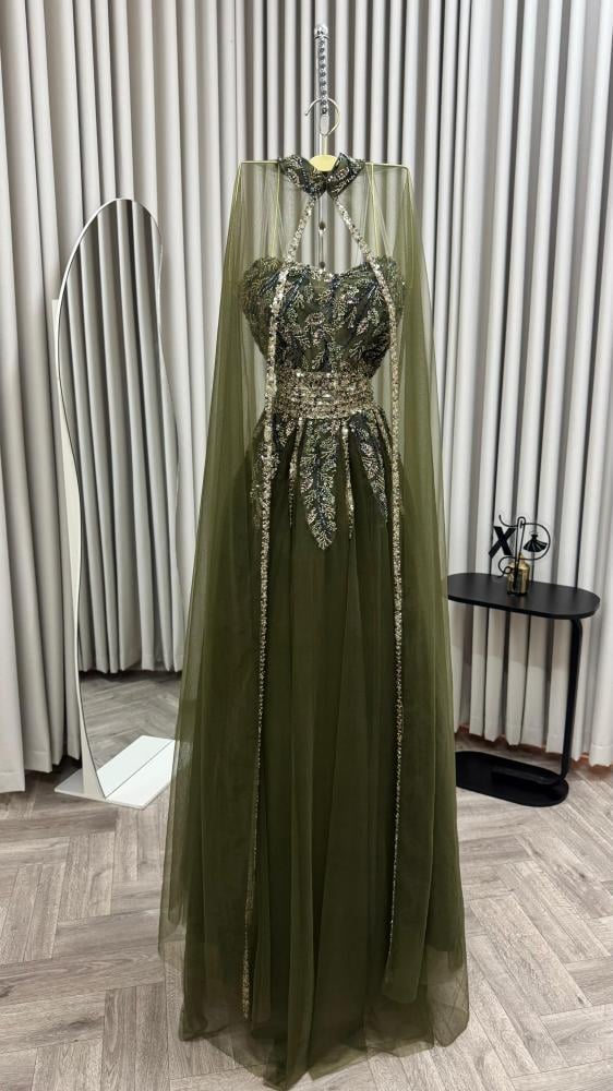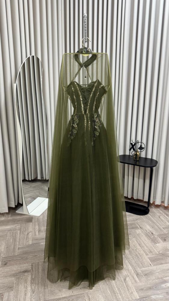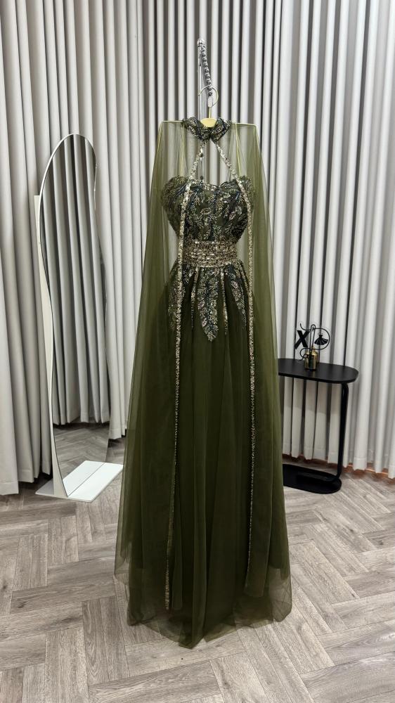 فستان سهره اللون زيتي قطعه تل من متجر جوهره X