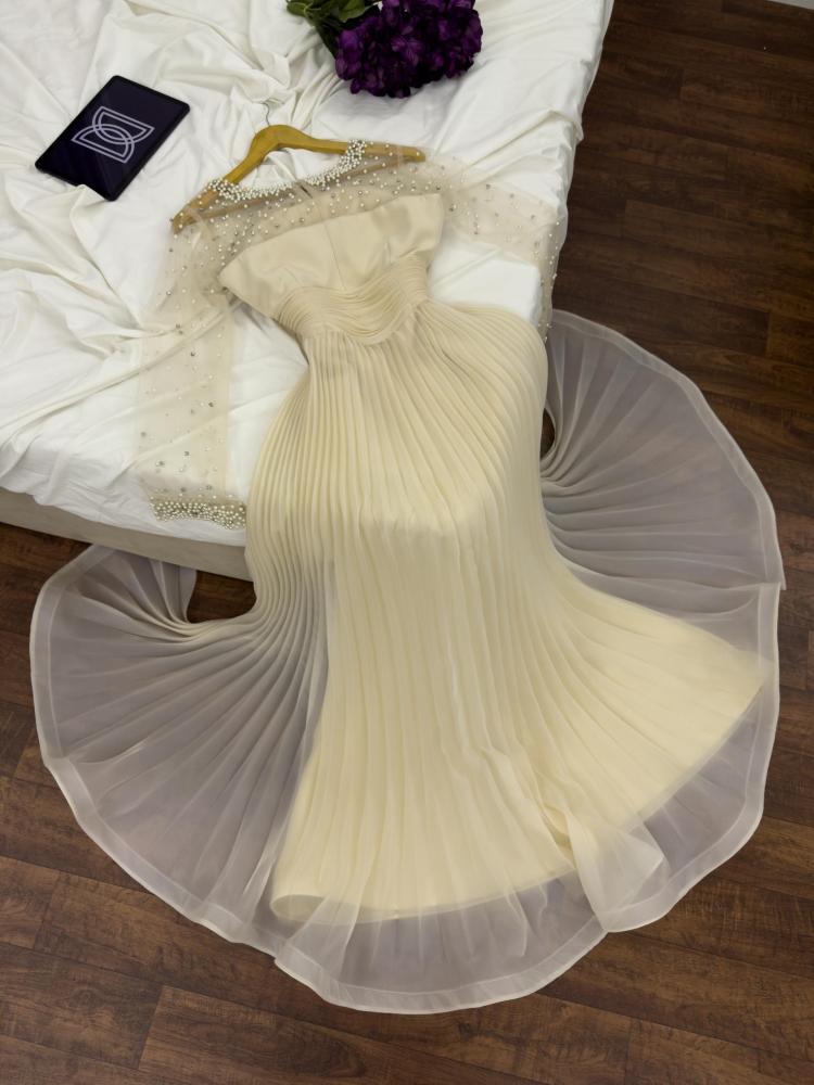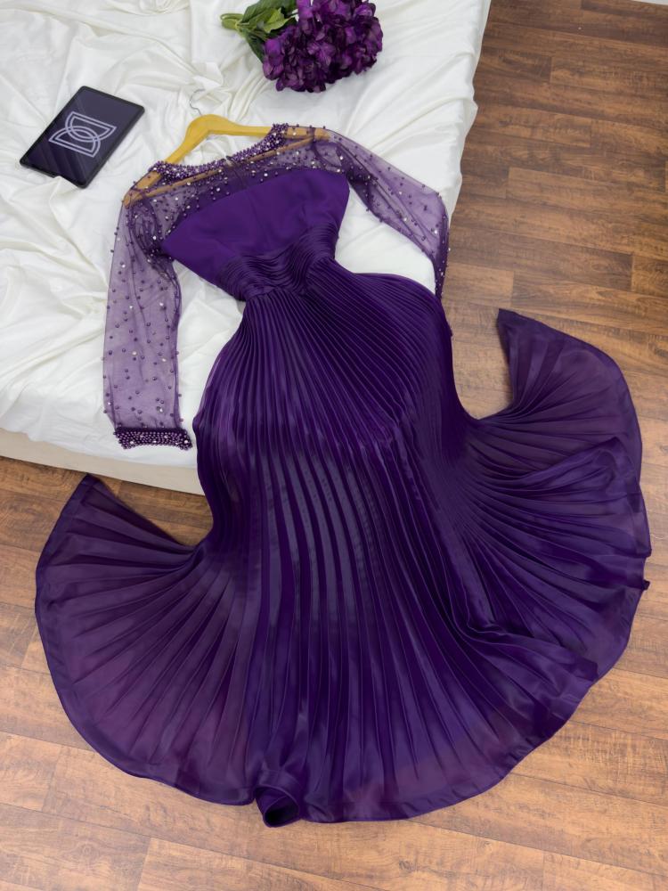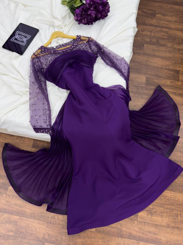 فستان سهره اللون موف و بيج من متجر جوهره D