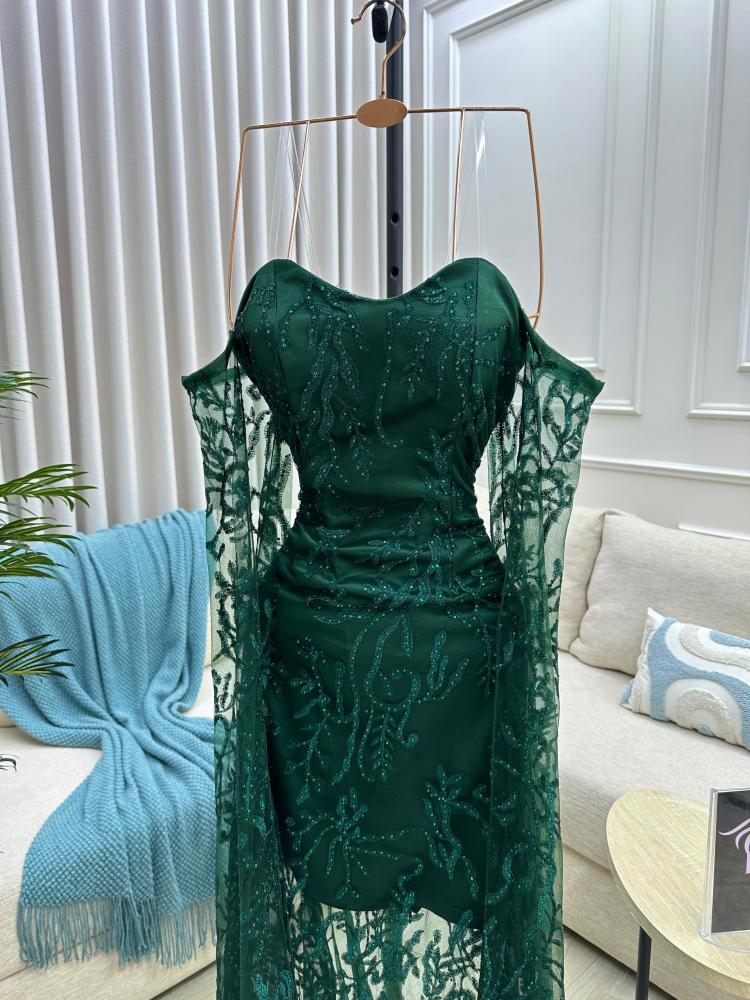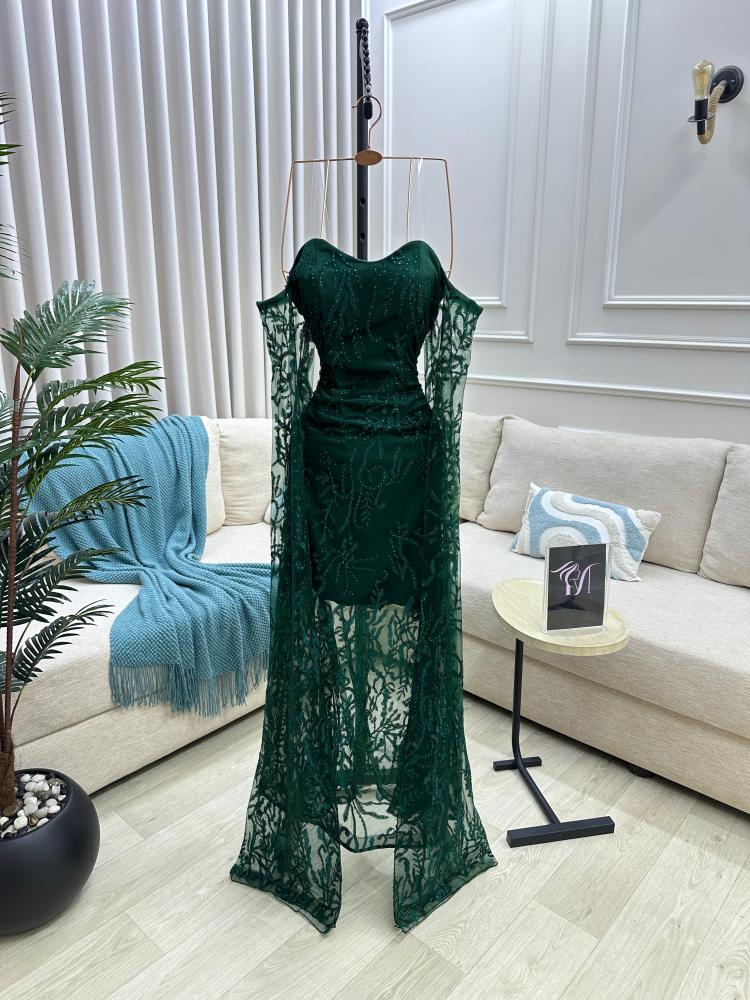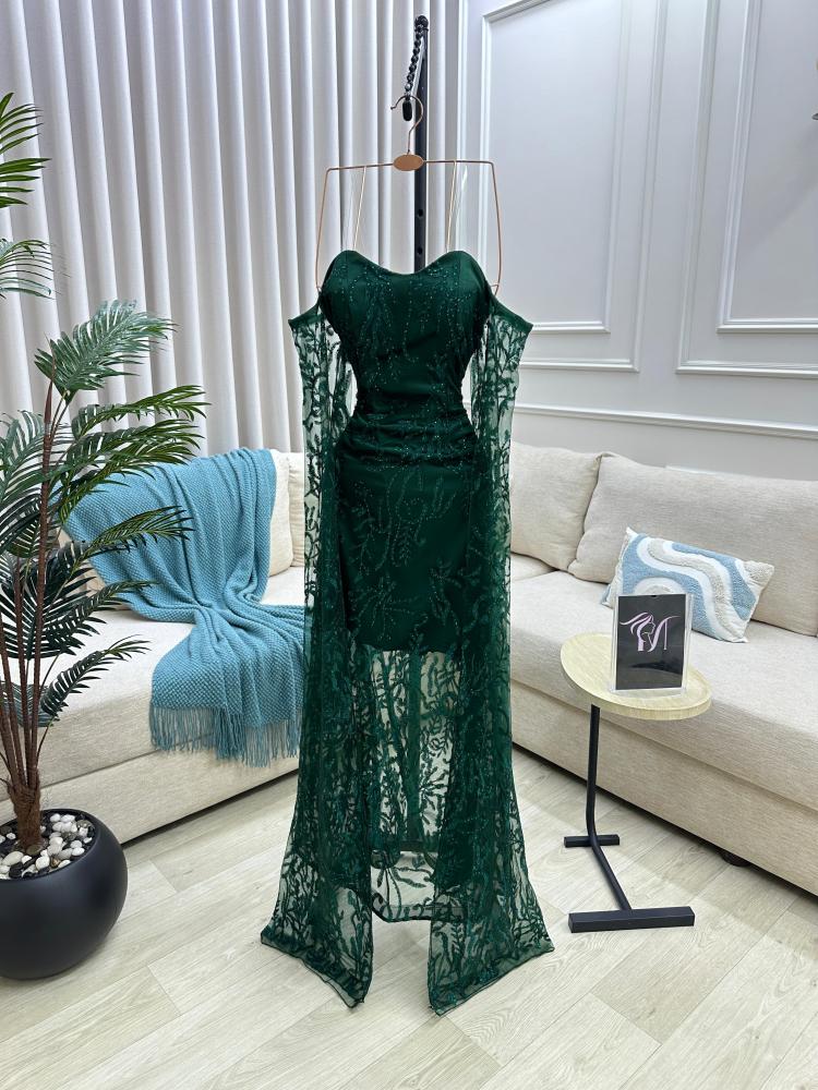 فستان سهره اللون اخضر تل تيواني كمبيوتر تطريز كمبيوتر فصوص من متجر جوهره MA