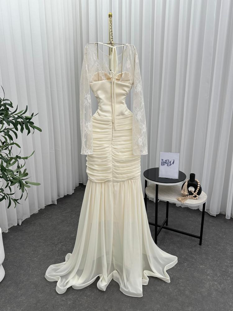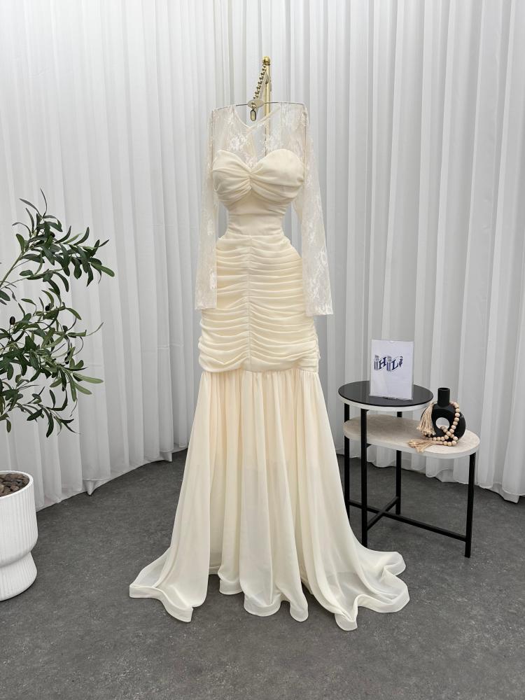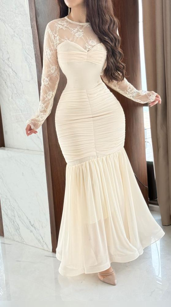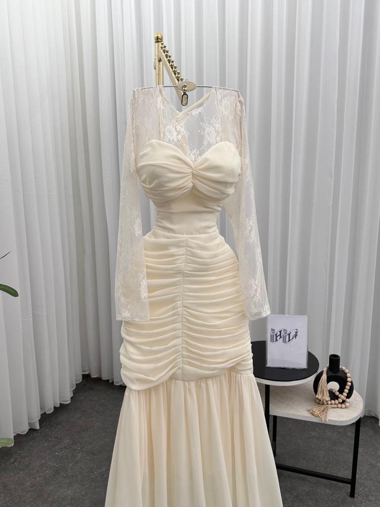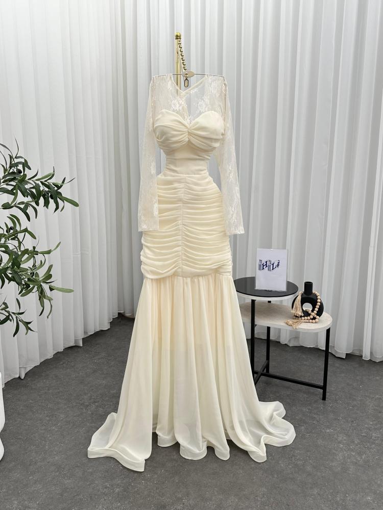 فستان سهره اللون سكري خامه شيفون جورجيت من متجر جوهره HL