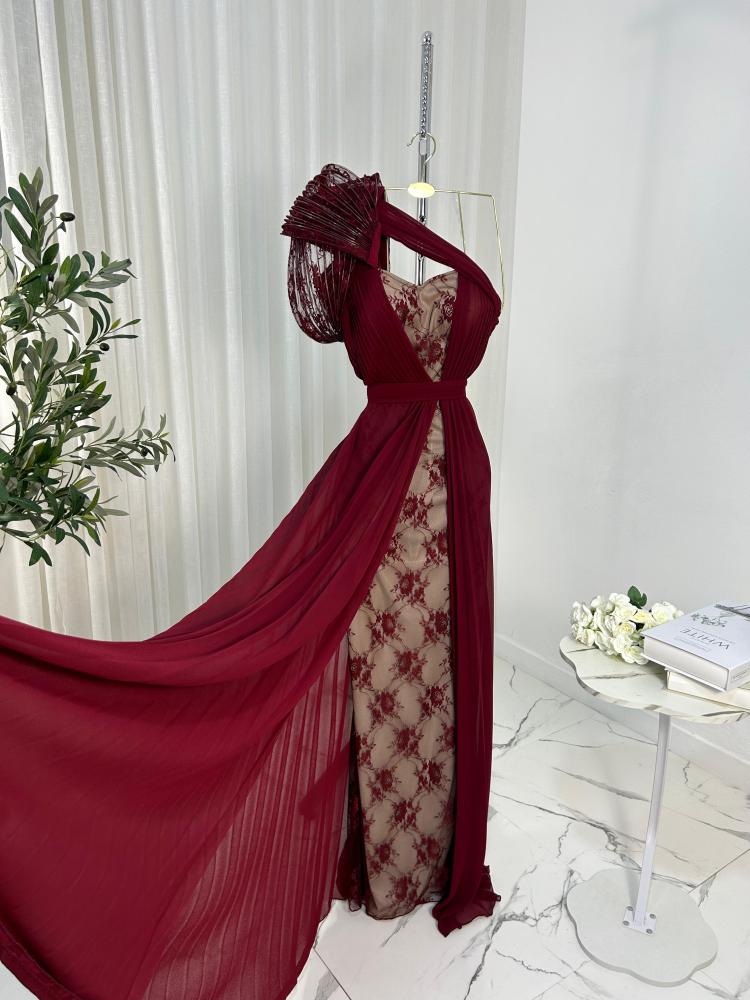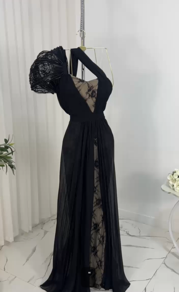 فستان سهره الالوان اسود و عودي خامه شيفون ودانتيل لونين MN