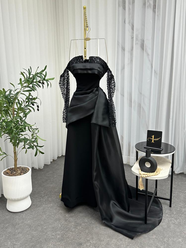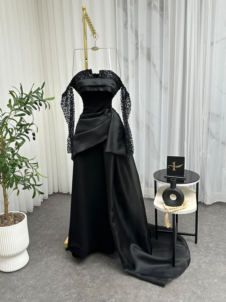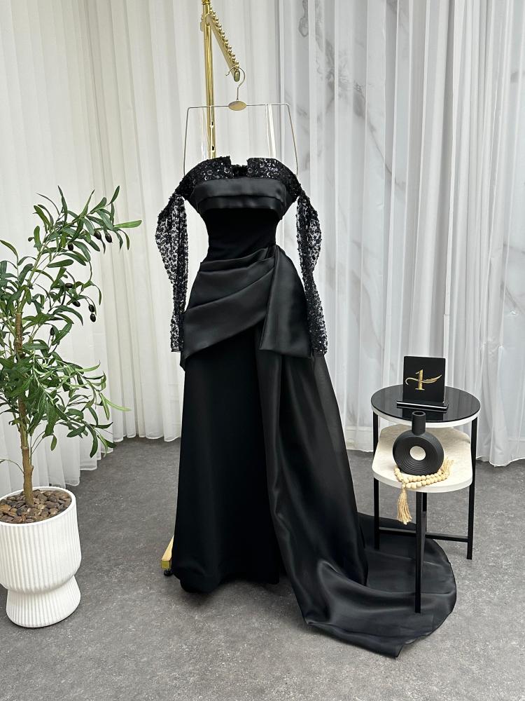 فستان سهره الالوان اسود عودي الخامة: كريب استرتش مع قماش سهره اورنجزا من متجر جوهرهNO
