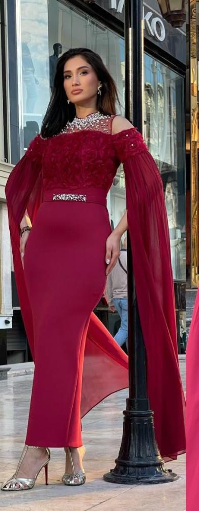 فستان سهره اللون برغندي باربي من متجر جوهره D