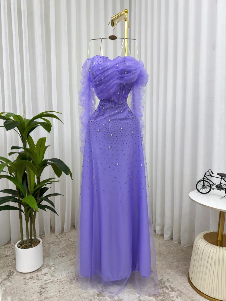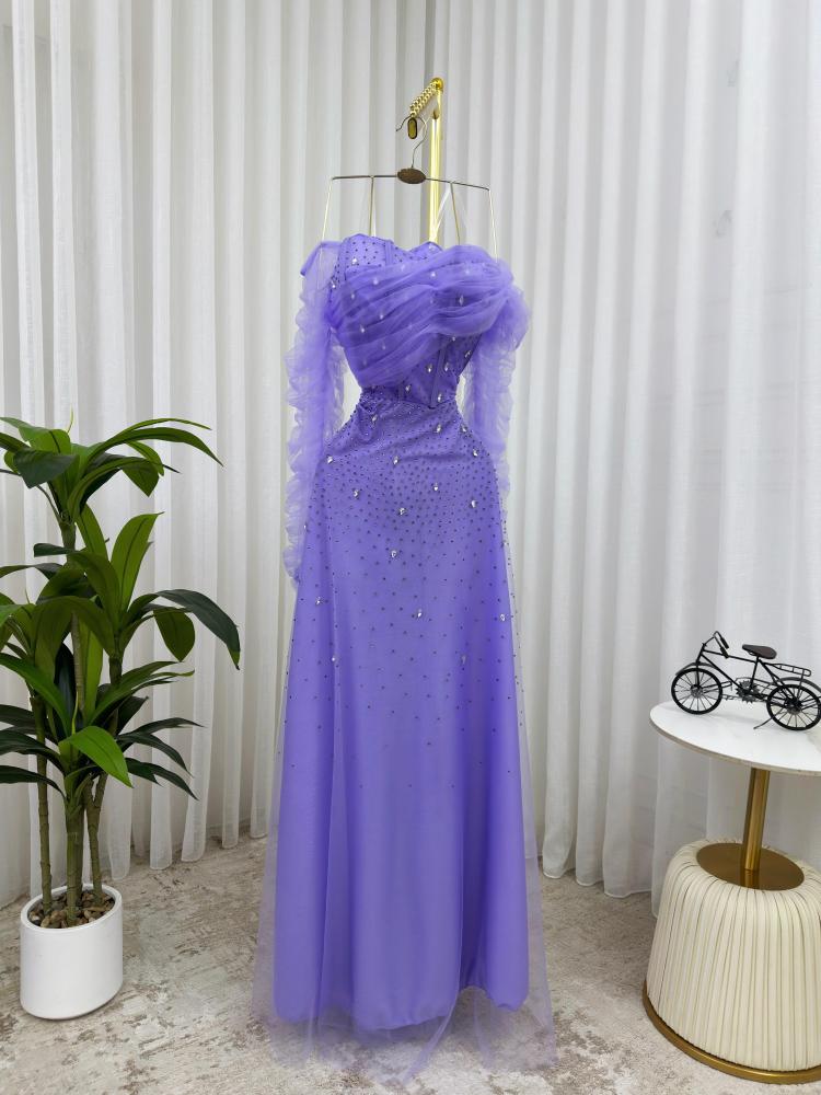 فستان سهره اللون موف شيفون مطرز من متجر جوهره LA