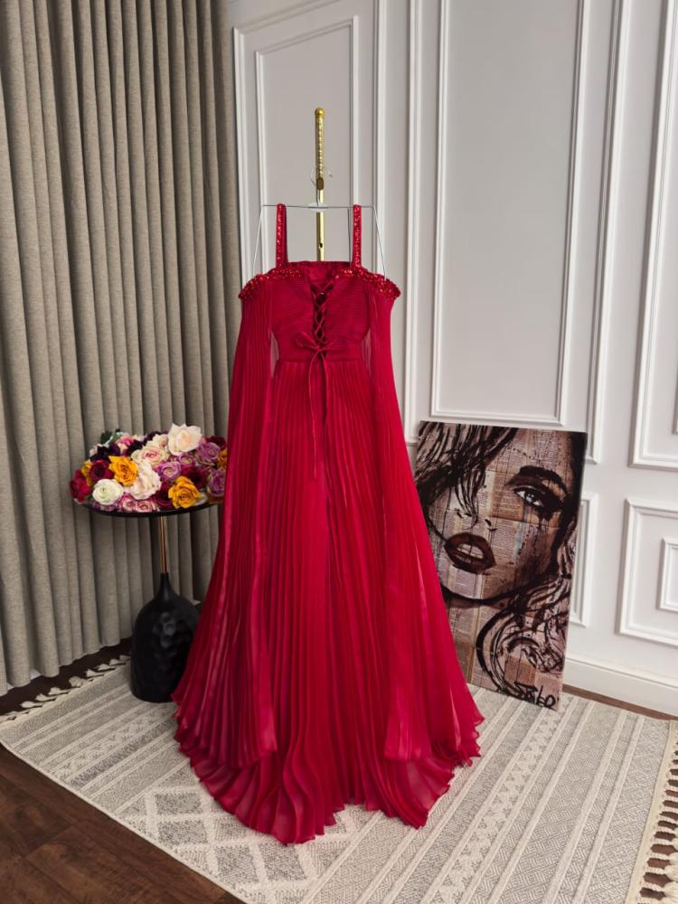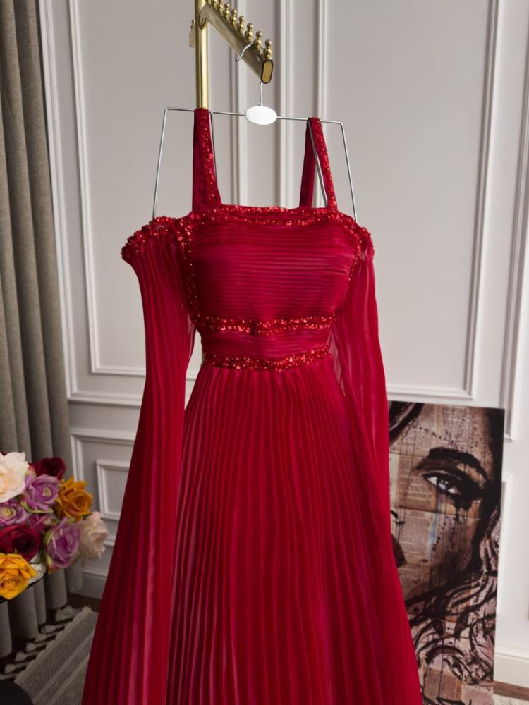 فستان سهره اللون احمر ميكادو بليسيه جازار ترتر من متجر جوهره JO