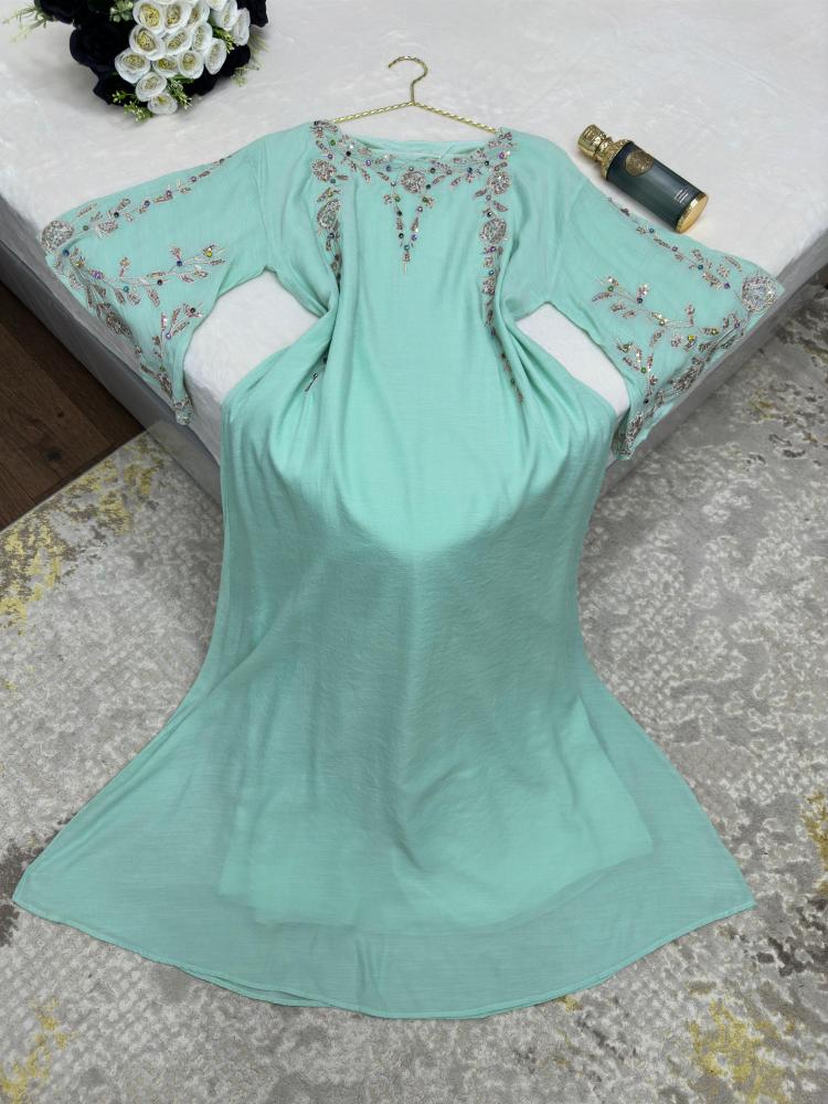 كولكشن رمضانالاسم/ جلابيه الوصف/ جلابيه خام سي واي مطرز كمبيوتر ومزين بكرستال ملون المقاسات/ 1_2_3_4_5 الألوان/ تيفاني - كحلي - ابيضكتابة اللون المطلوب عند الطلب