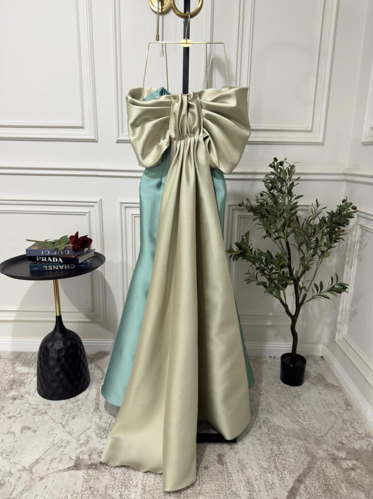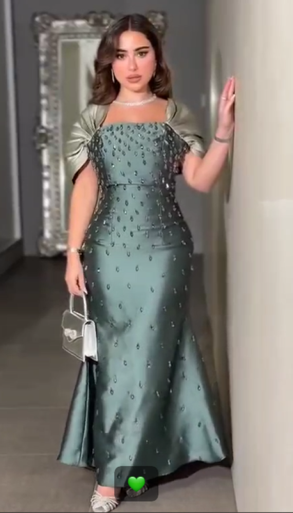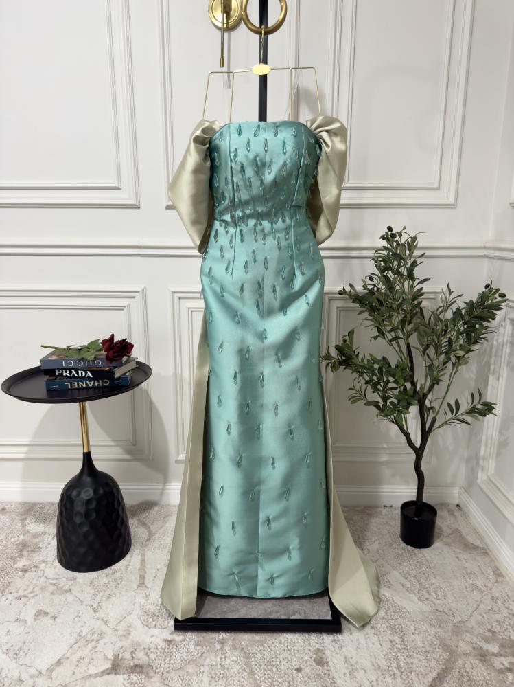 فستان فخم اللون تفني القماش ميكادو تطريز بلور شقل راقي TR
