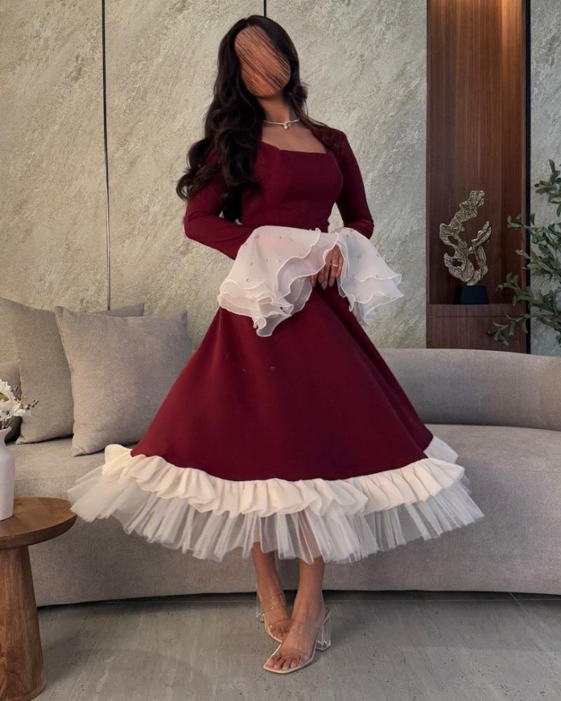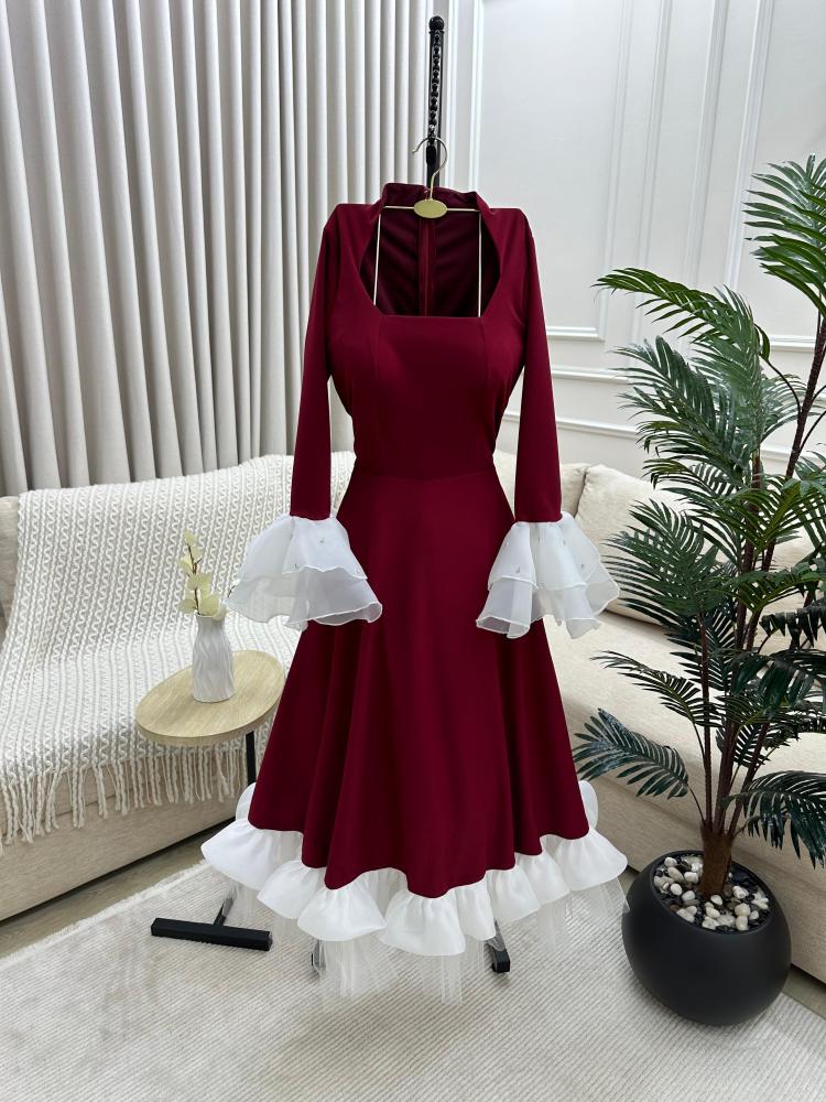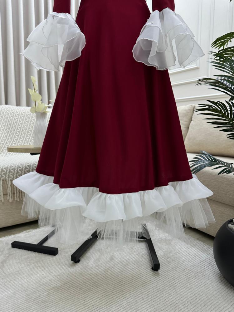 الخامه :كريب باربي +اكمام جازار مطرز +أطراف من الدانتيل -البرغندي لكرا و جيبون