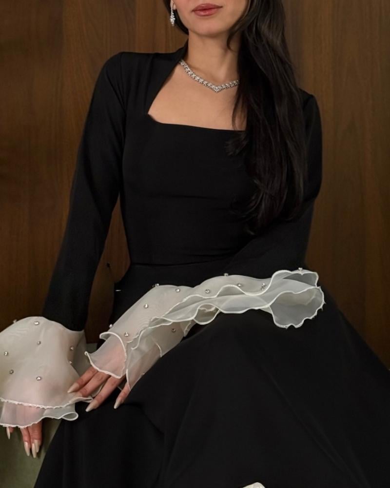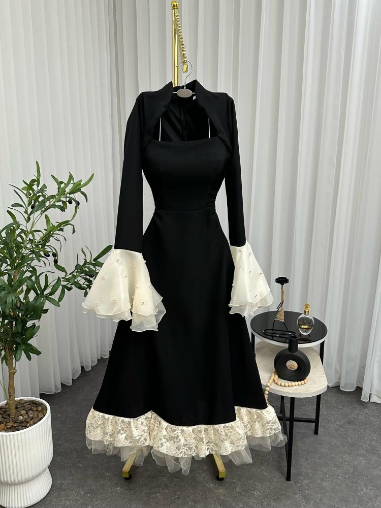 التصميم : فستان ناعم كلوش باكمام فرنسيه مزين بالكريستال لاطلاله انيقه ناعمه