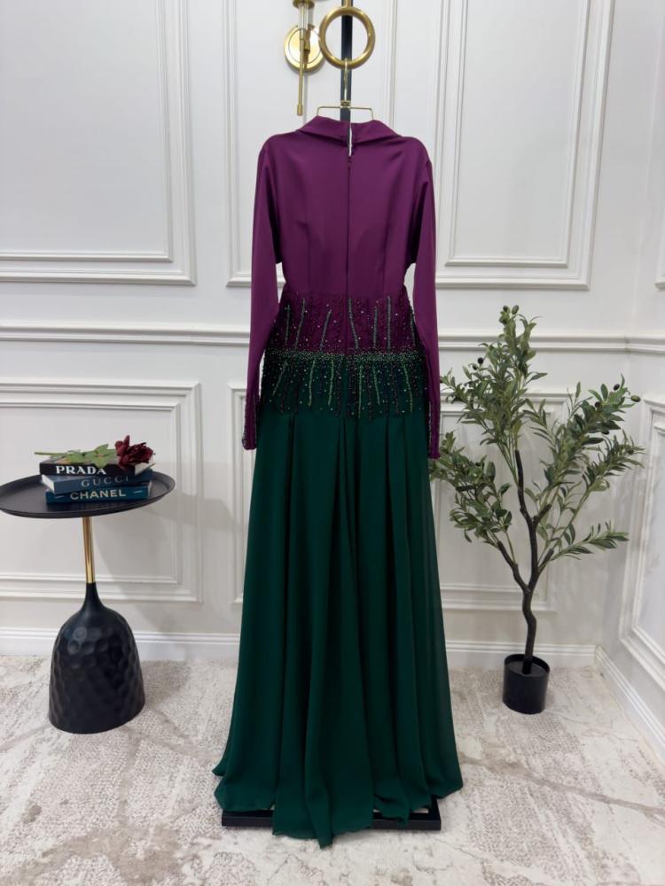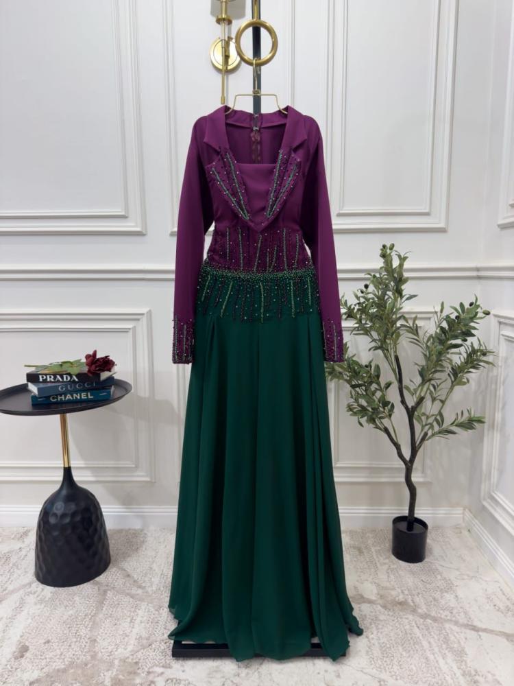 فستان فخم الالوان اخضر وسماوي القماش باربي درجه اولئ تطريز يدوي رآقي TR