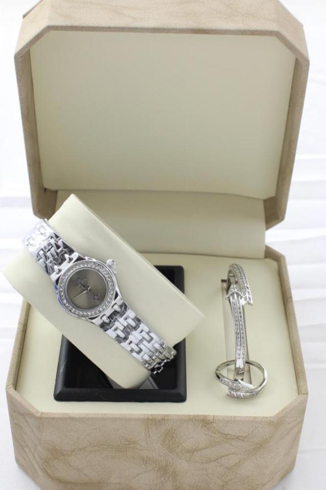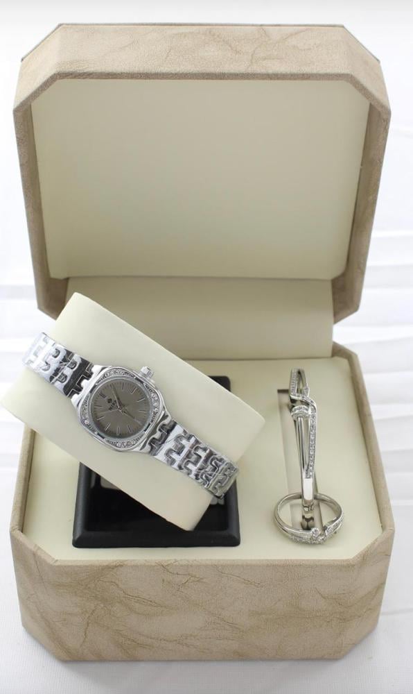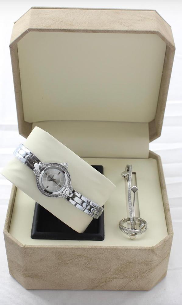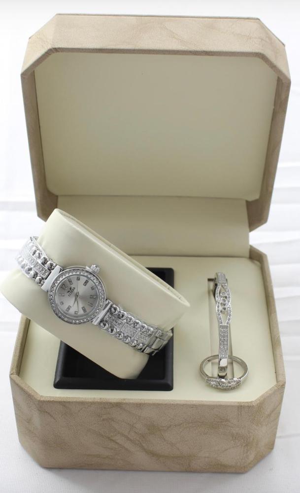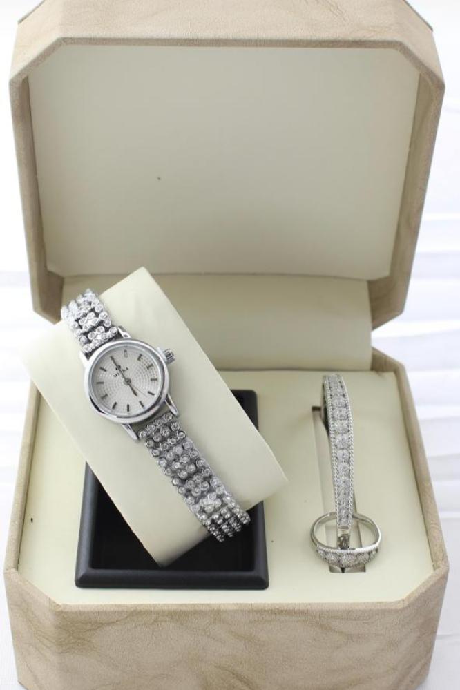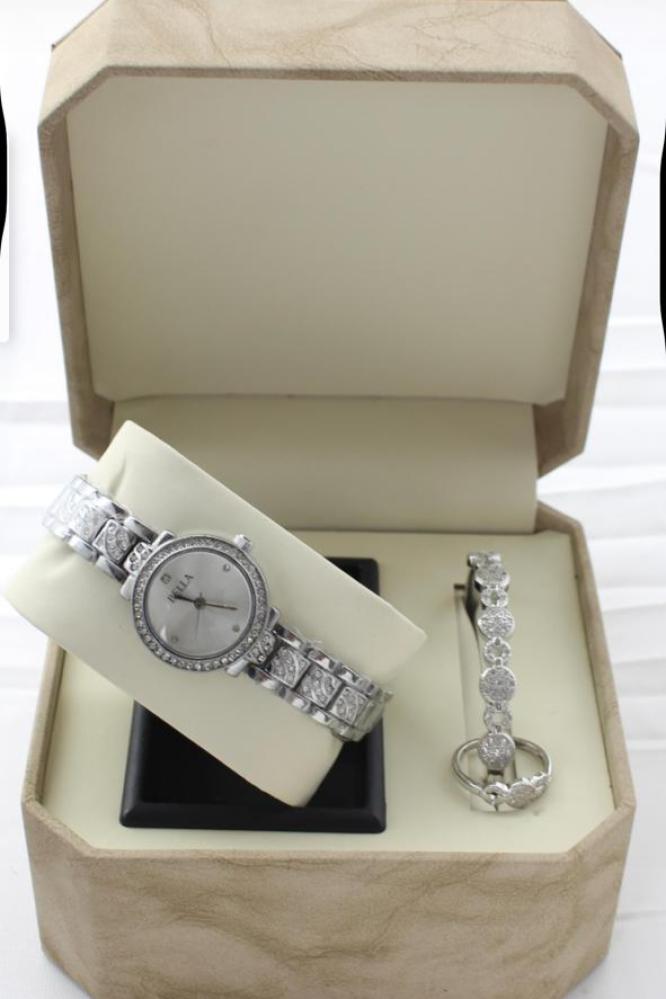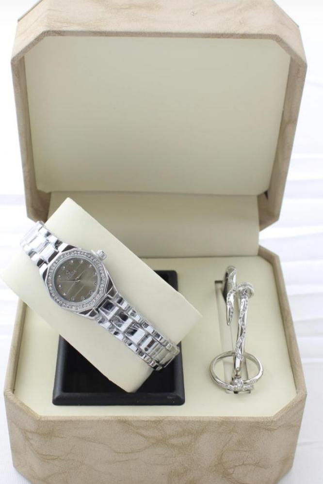 طقم أنيق فاخر 💫ساعة بتصميم أنثوي راقٍ مع أسورة أنيقة وخاتم تضيف لمسة فخامة لإطلالتك⏱ ضمان لمدة سنة🎁 يأتي في علبة هدايا فاخرة جاهزة للإهداء