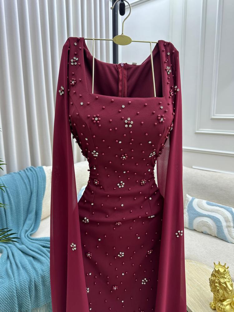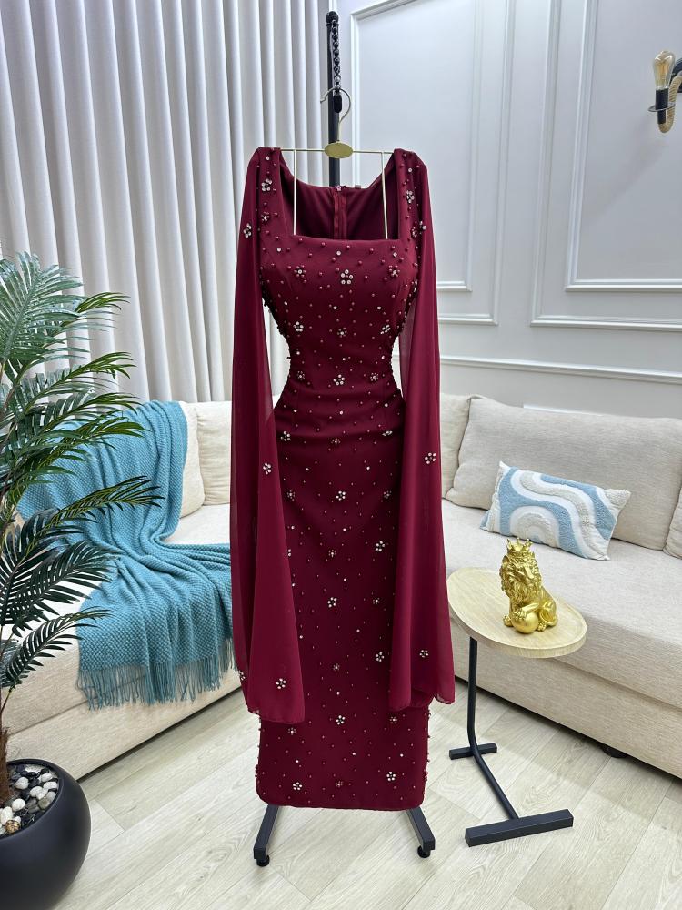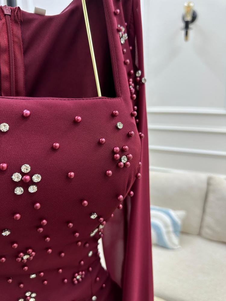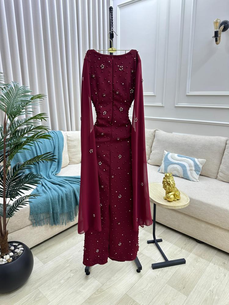 فستان سهره اللون برغندي باربي درجه اولى. تطريز راقي من متجر جوهره TR