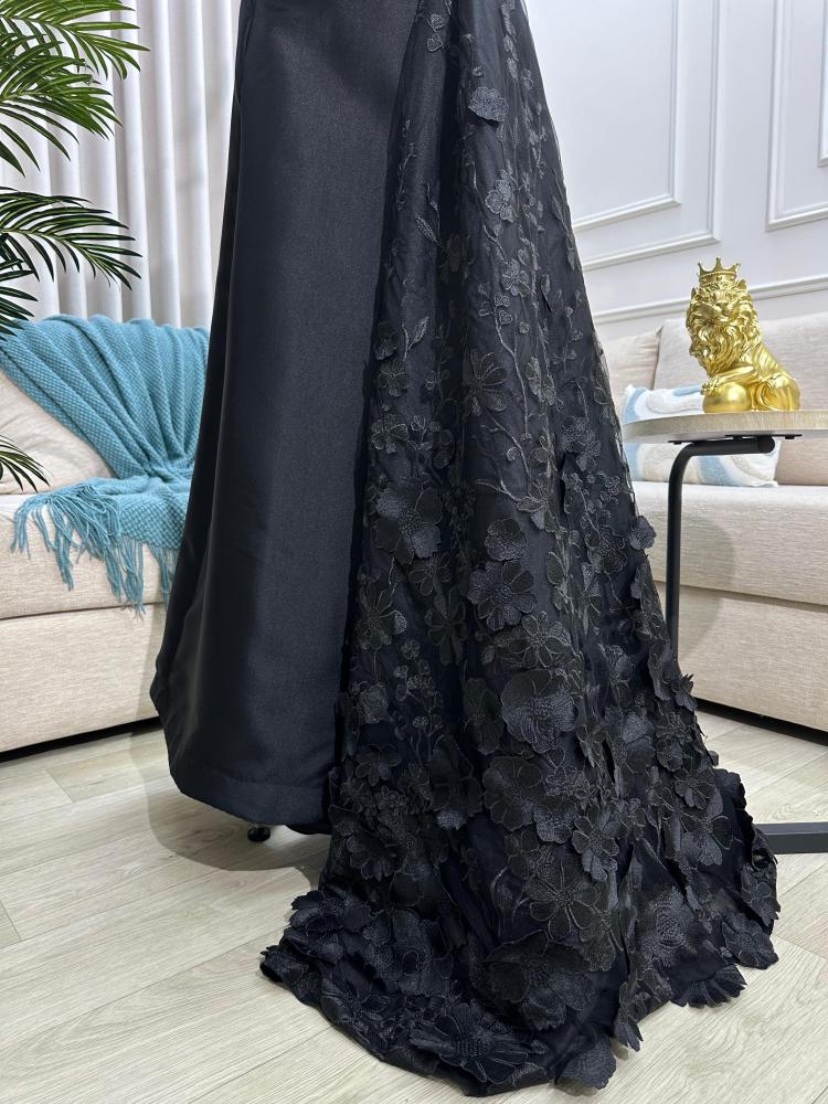 فستان سهره اللون اسود القماش ميكادو درجه اولى علا قماش مورد من متجر جوهره TR
