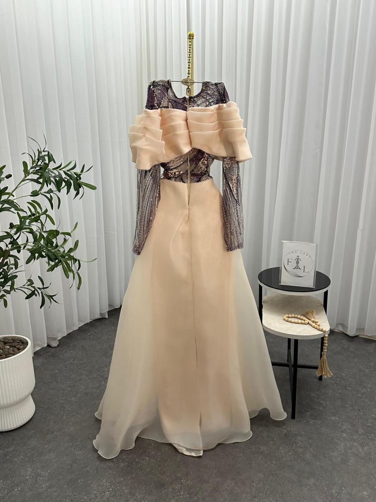 فستان سهره اللون بيج نوع القماش كلفه متجر جوهره FR