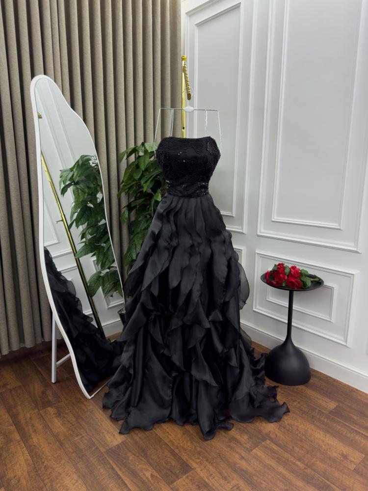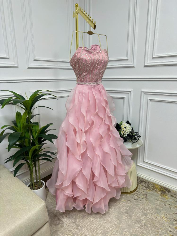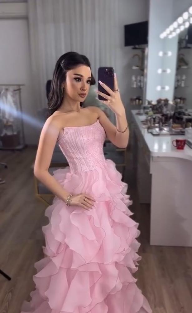 فستان سهره اللون وردي كحلي اسود القماش جازار مع تفته سيلا مبطن ترتر A MN