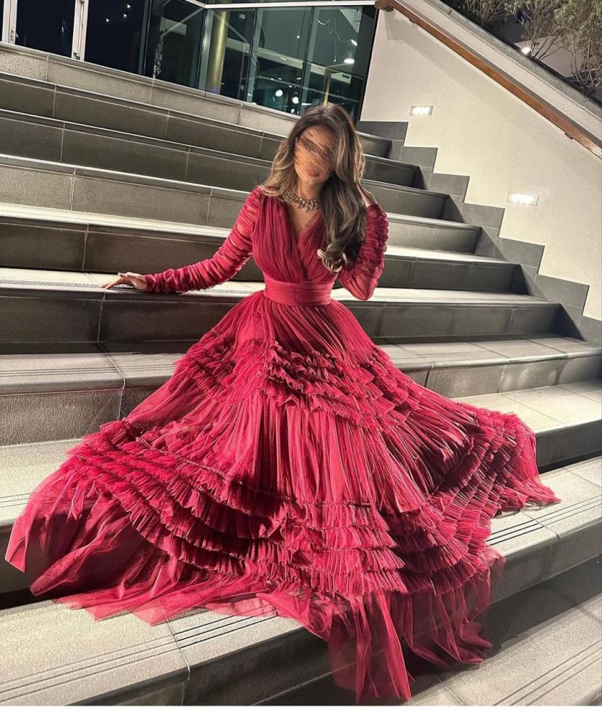 فستان اللون برغندي تل كراميش من متجر جوهرهD
