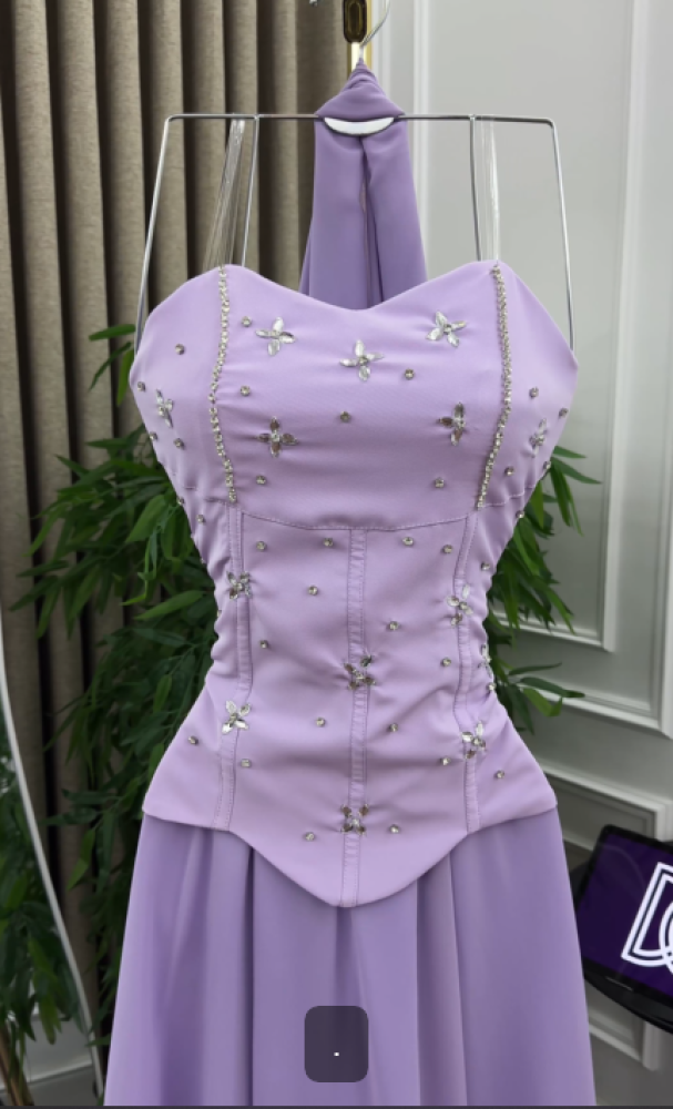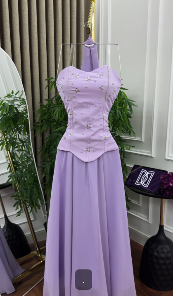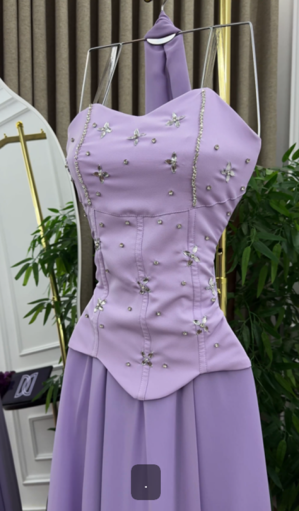 فستان سهره الالوان موف و تفاحي الصدر تفته وشيفون كلوش تطريز يدو من متجر جوهره D