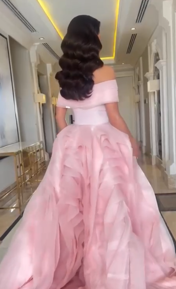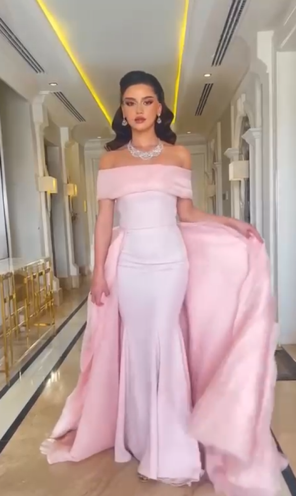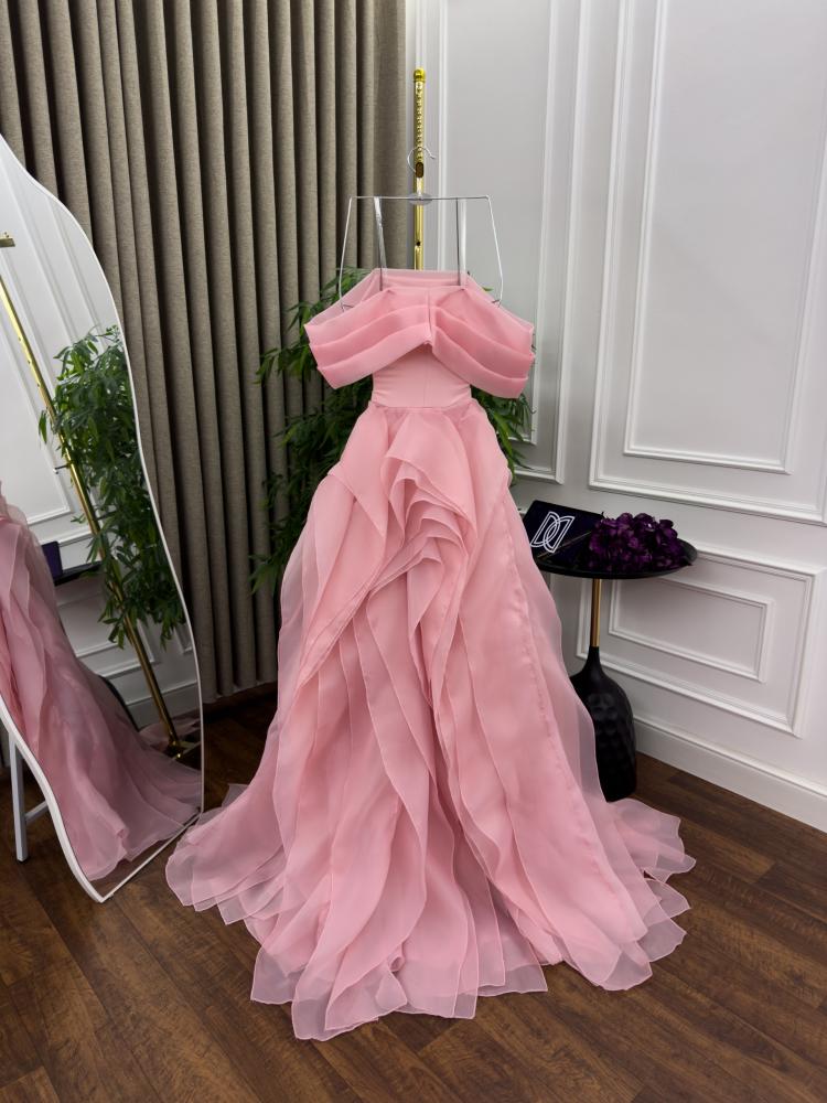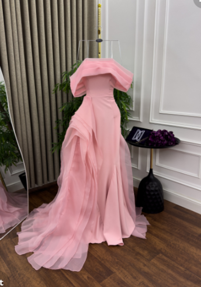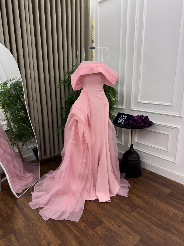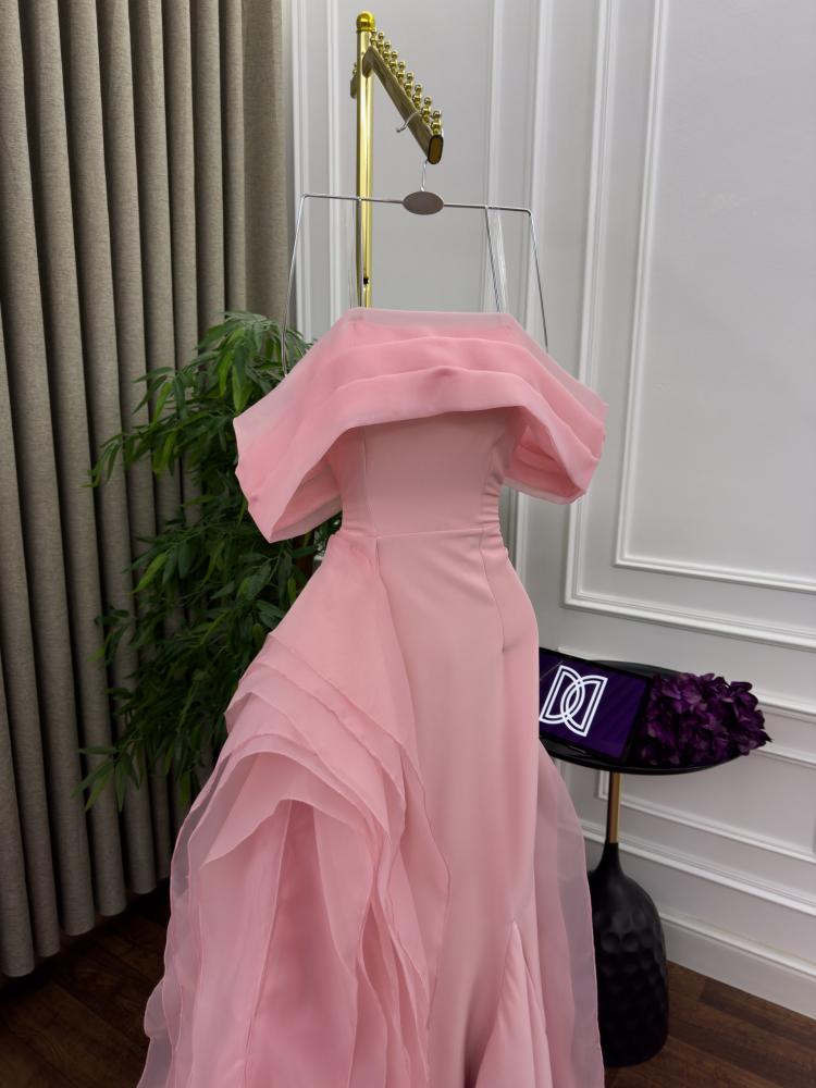 فستان سهره اللون وردي عودي باربي وذيل اورجنزا من متجر جوهره D MN