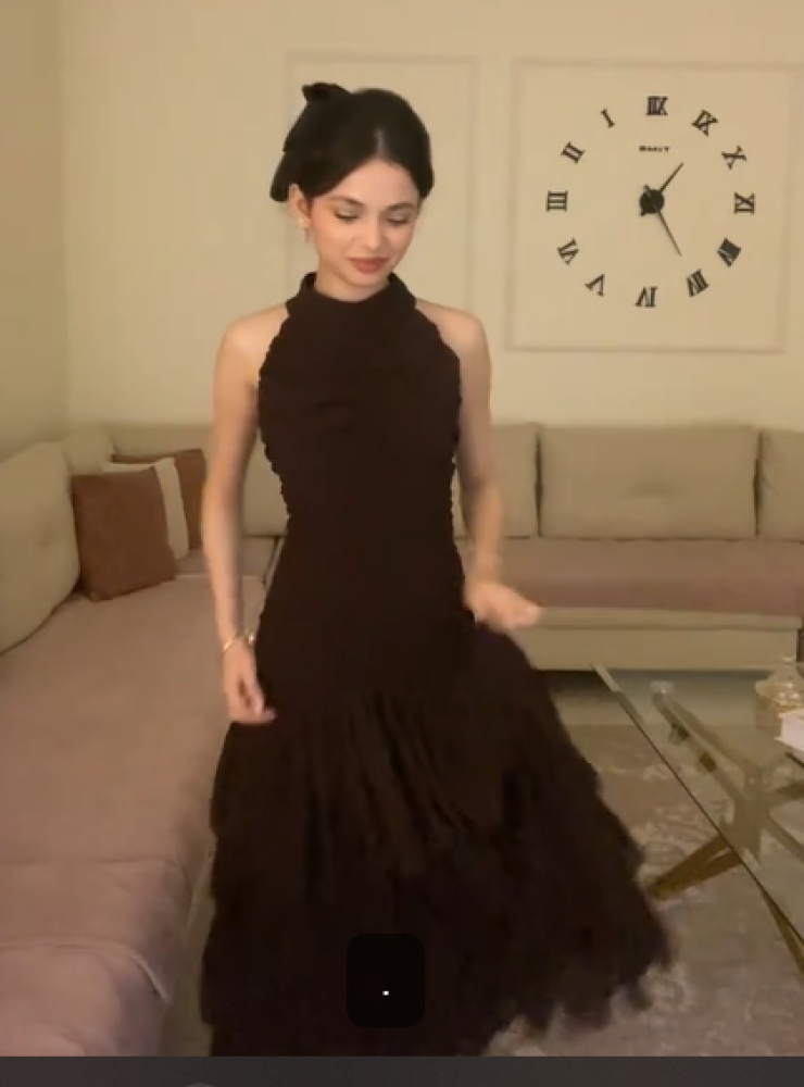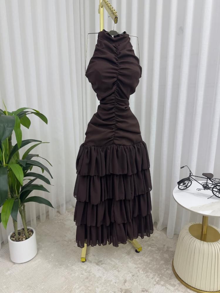 فستان سهره اللون بني باربي شيفون من متجر جوهره AR
