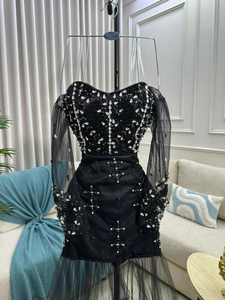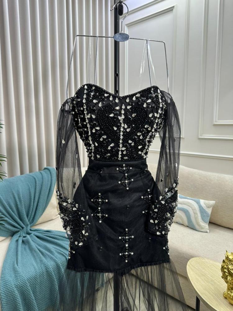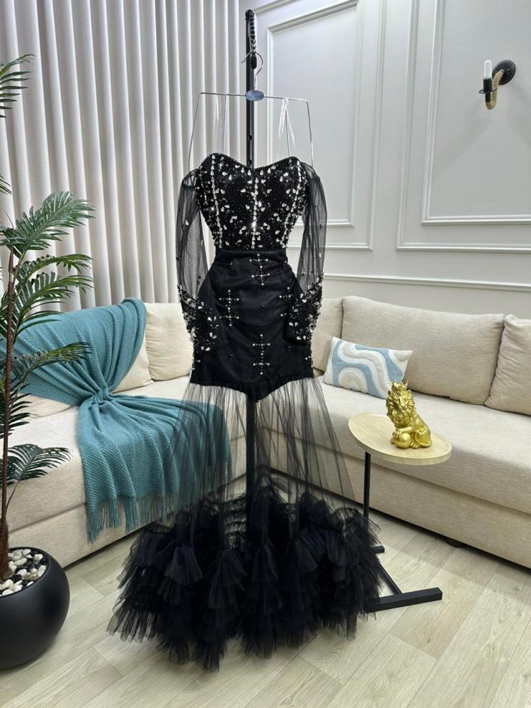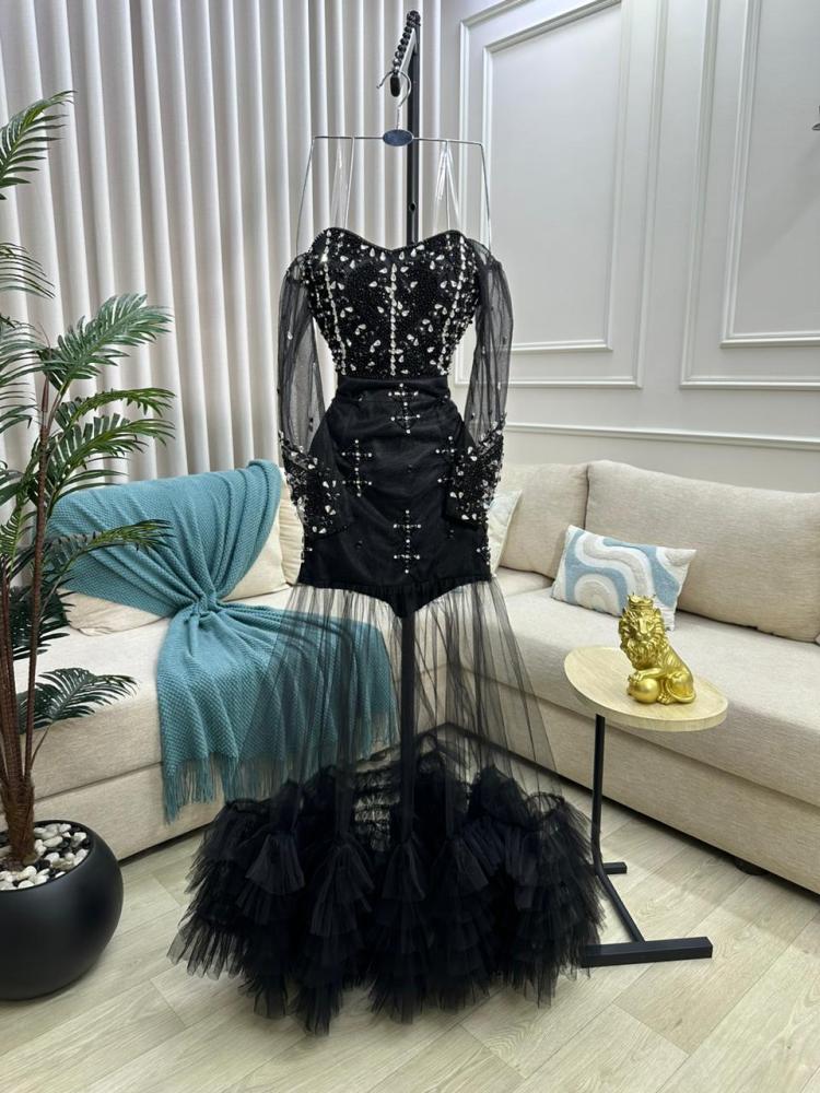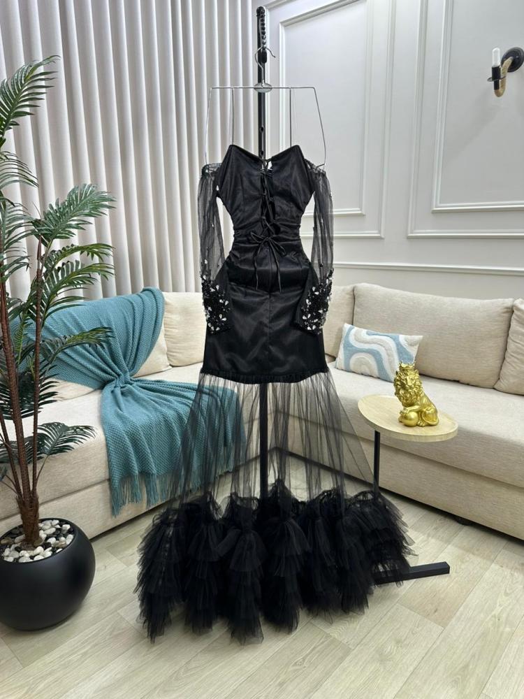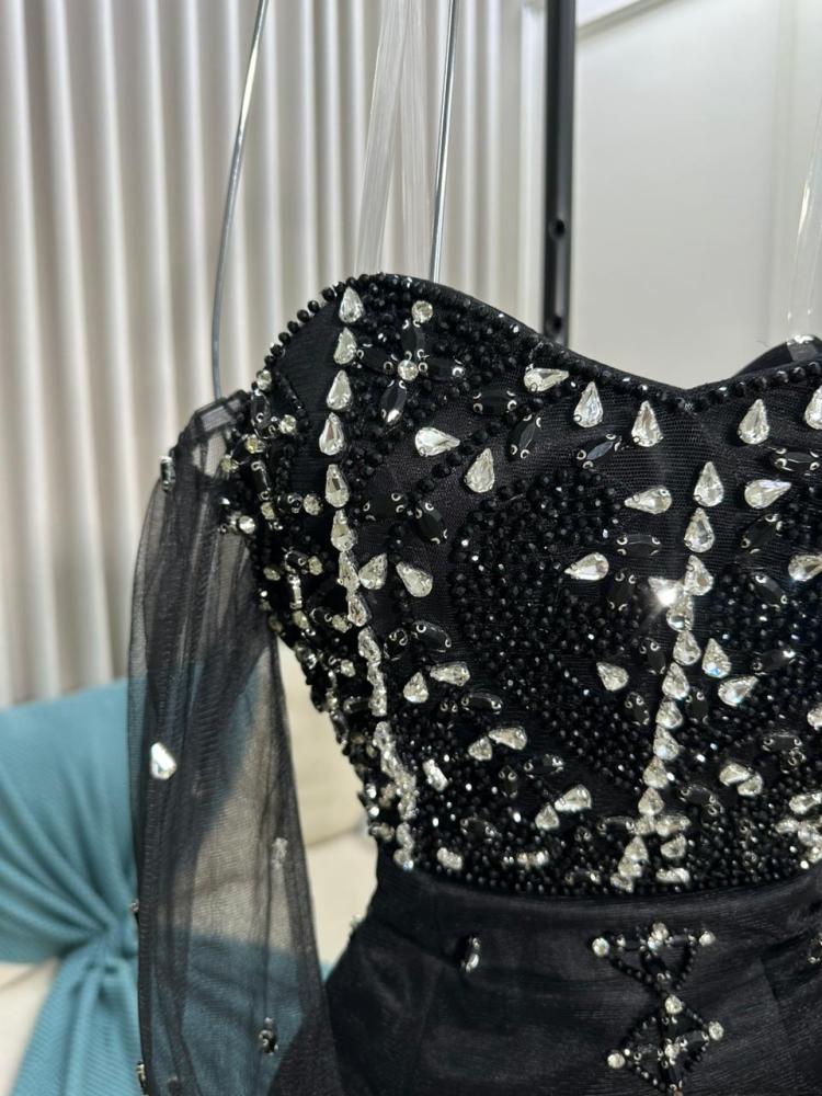 فستان سهره اللون اسود تل اصلي درجه اولى بتطريز يدوي راقي من متجر جوهره TR