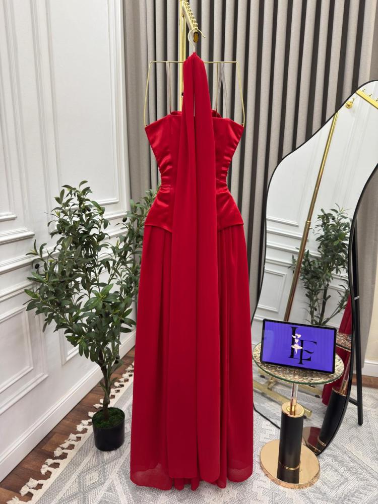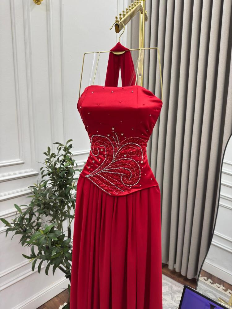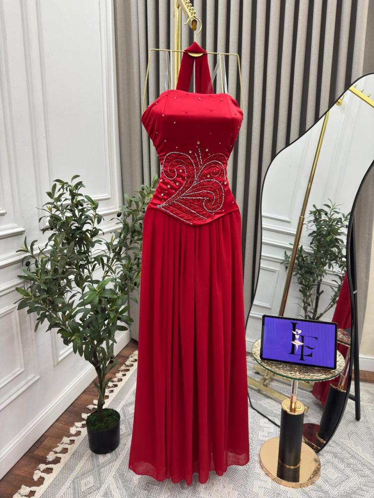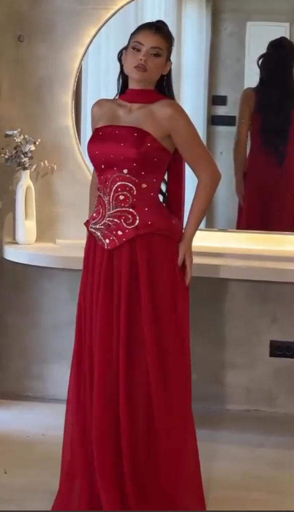 فستان سهره اللون عودي يشفون والصدريه تفته لمه تطريز خرز من متجر جوهره LF