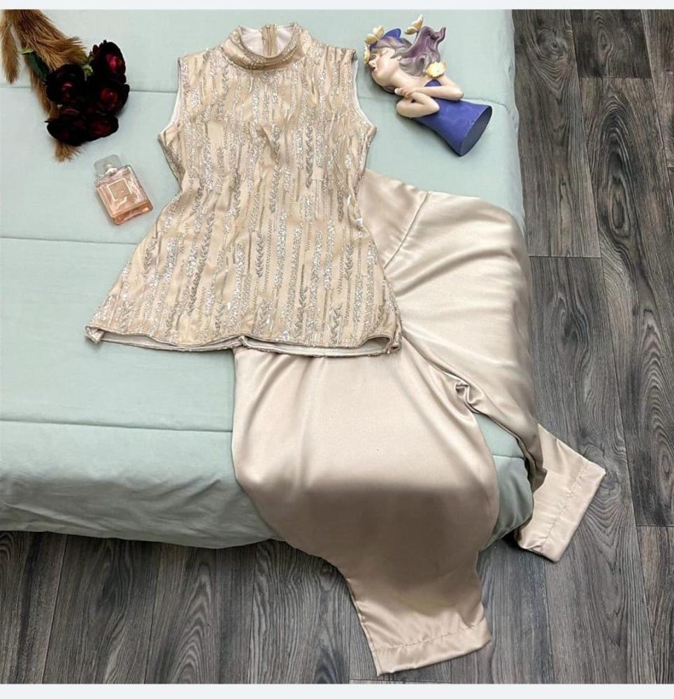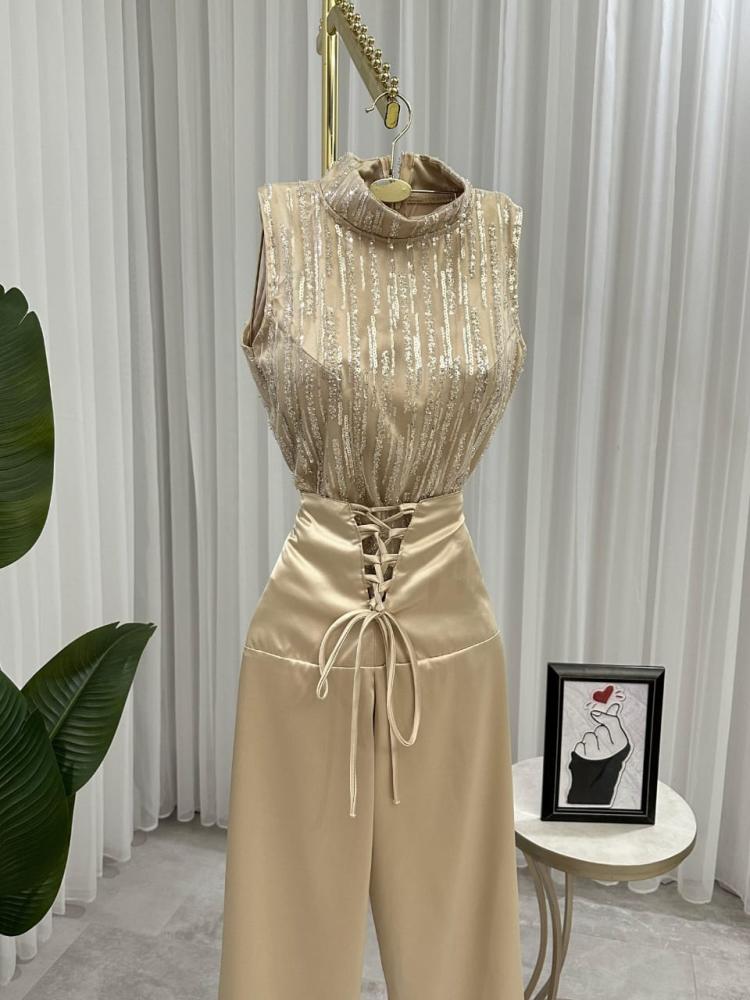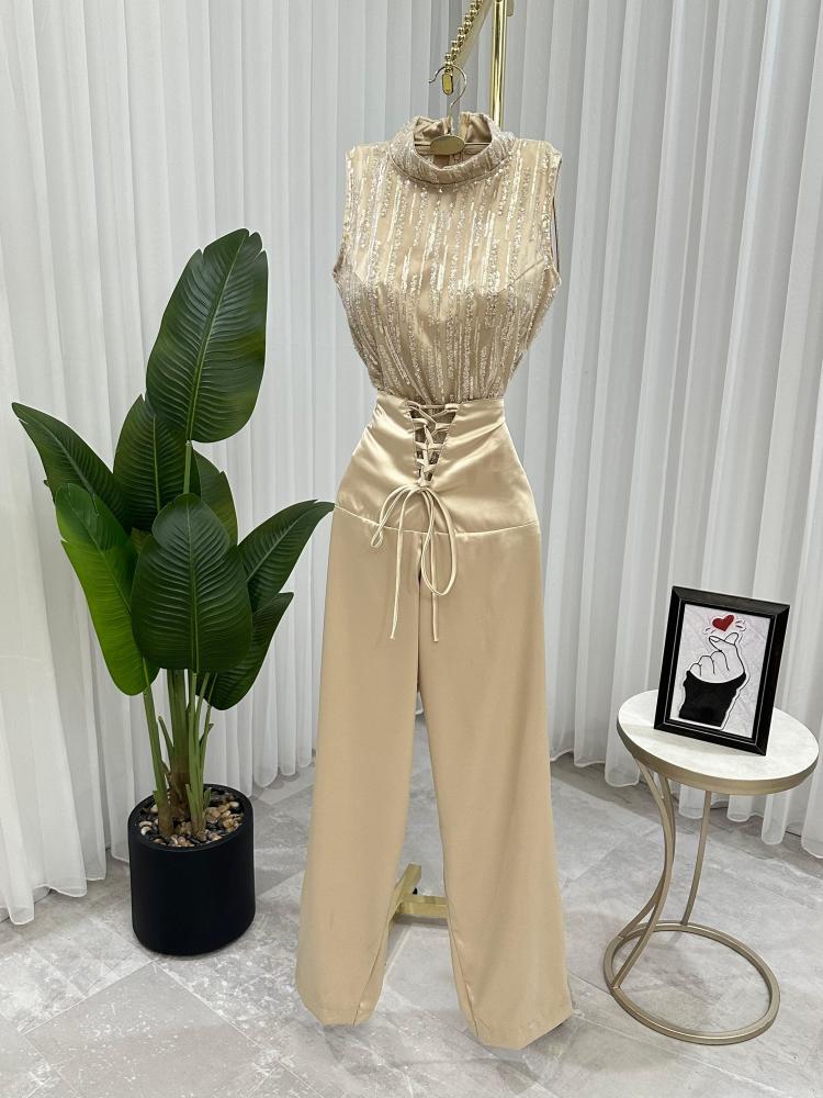 كولكشن العيدطقم مكون من قطعتين بلوزه هاي نك مطرز مع بنطلون مع رباط من الامام طويل ضيقالخامه : تفتهالتمدد: غير قابل للتمدداللون : كاكيالمقاسات : S M L XL XXL