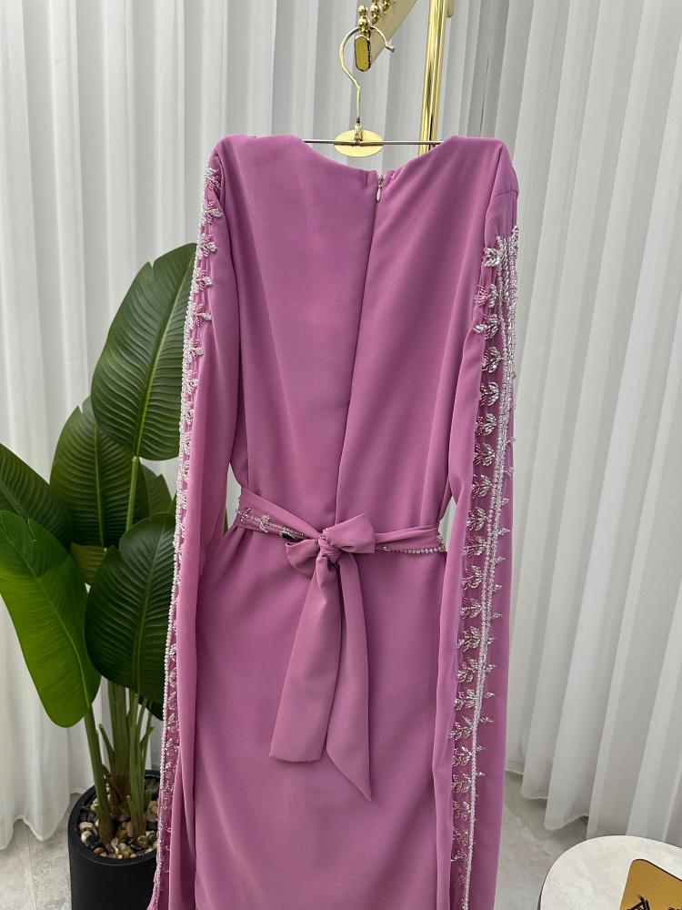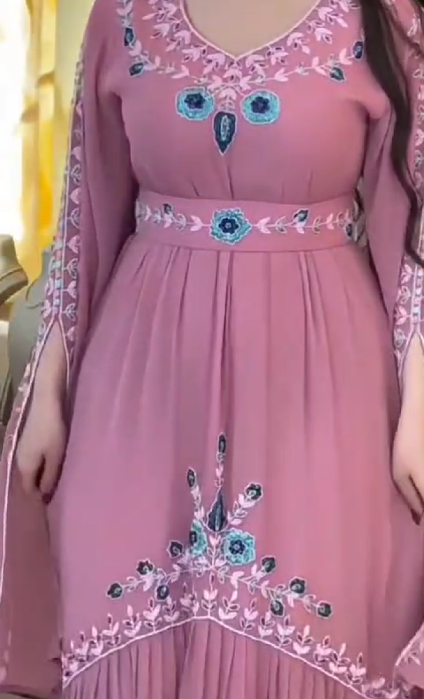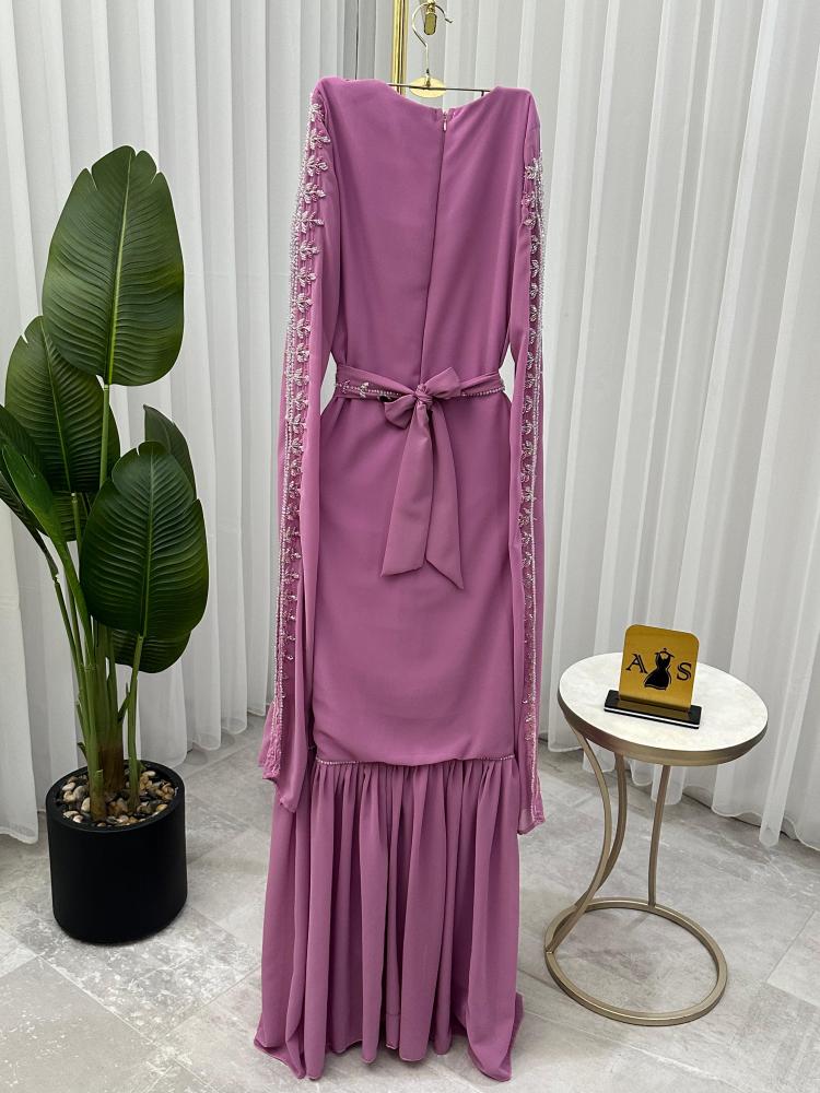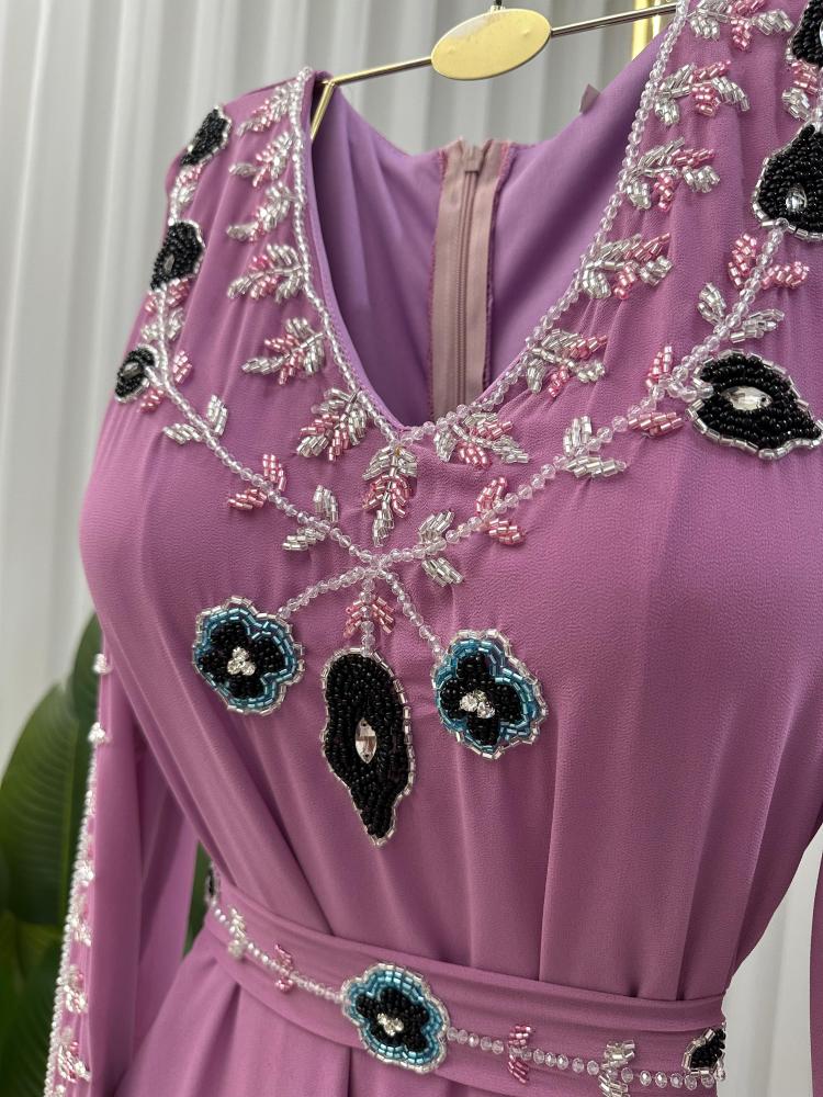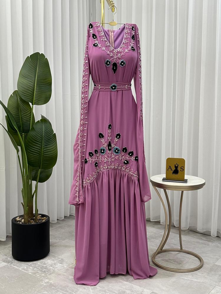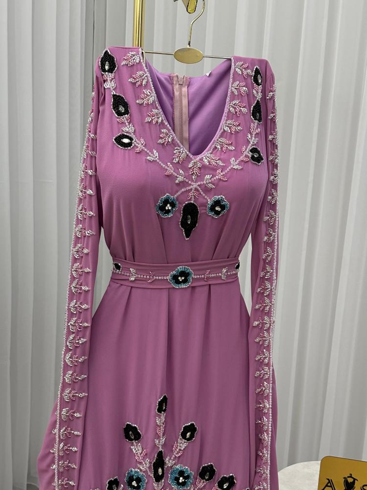 فستان سهره الخامه شيفون تطريز اصلي AS