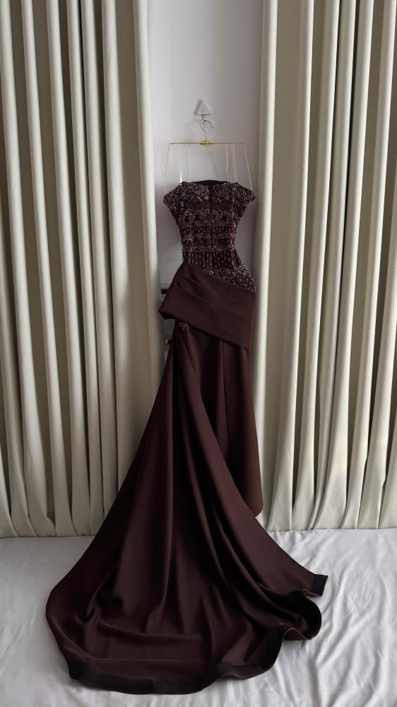 فستان سهره اللون بني خامه باربي وكلفه خرز من متجر جوهره MN