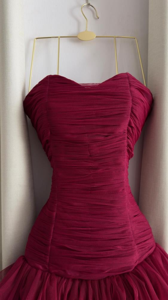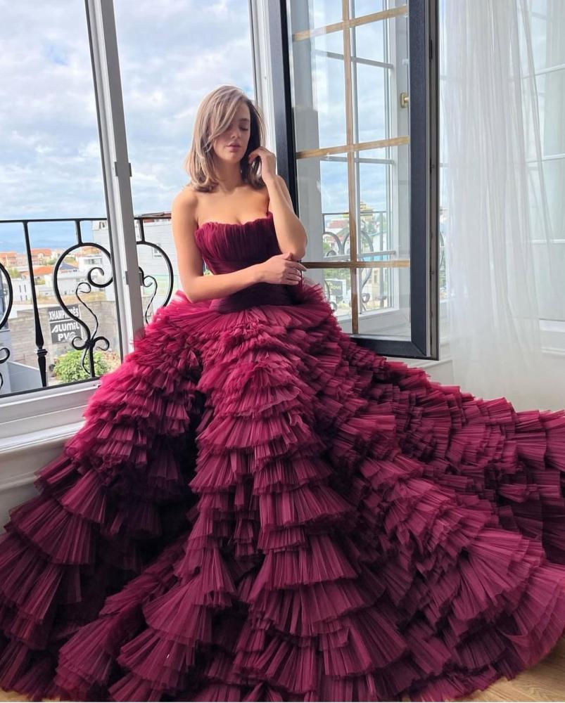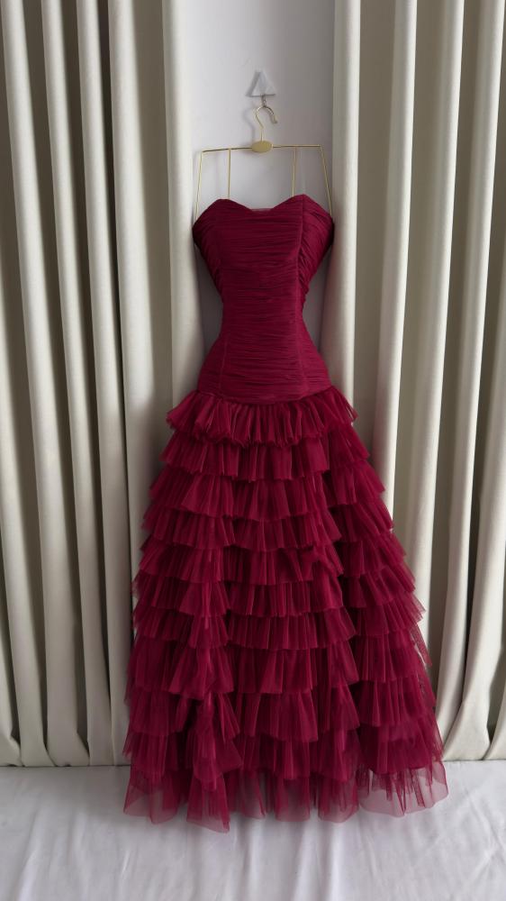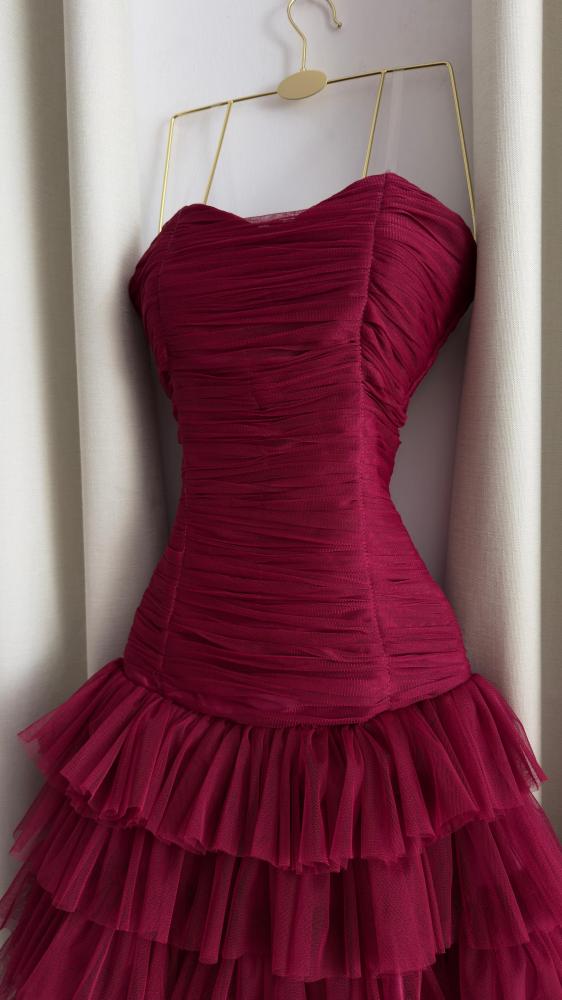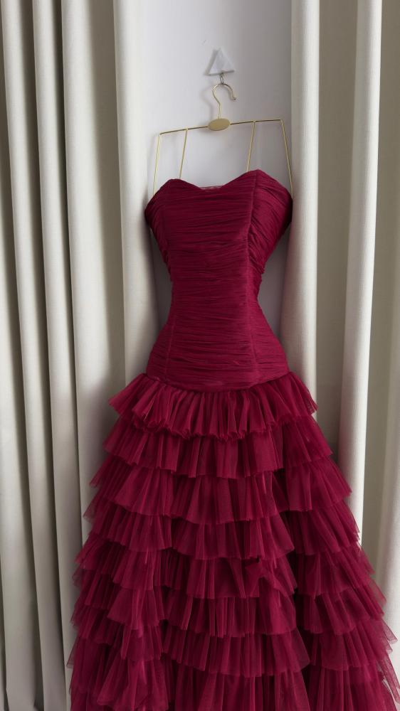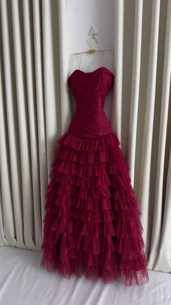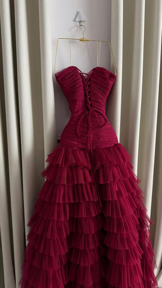 فستان سهره اللون برغندي تل من متجر جوهره MN