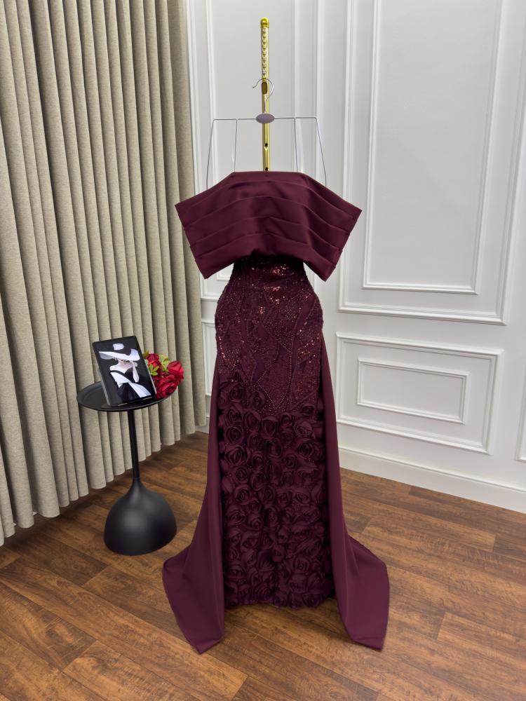 فستان سهره اللون برغندي الخامه تفته شك سهره من متجر جوهره JR
