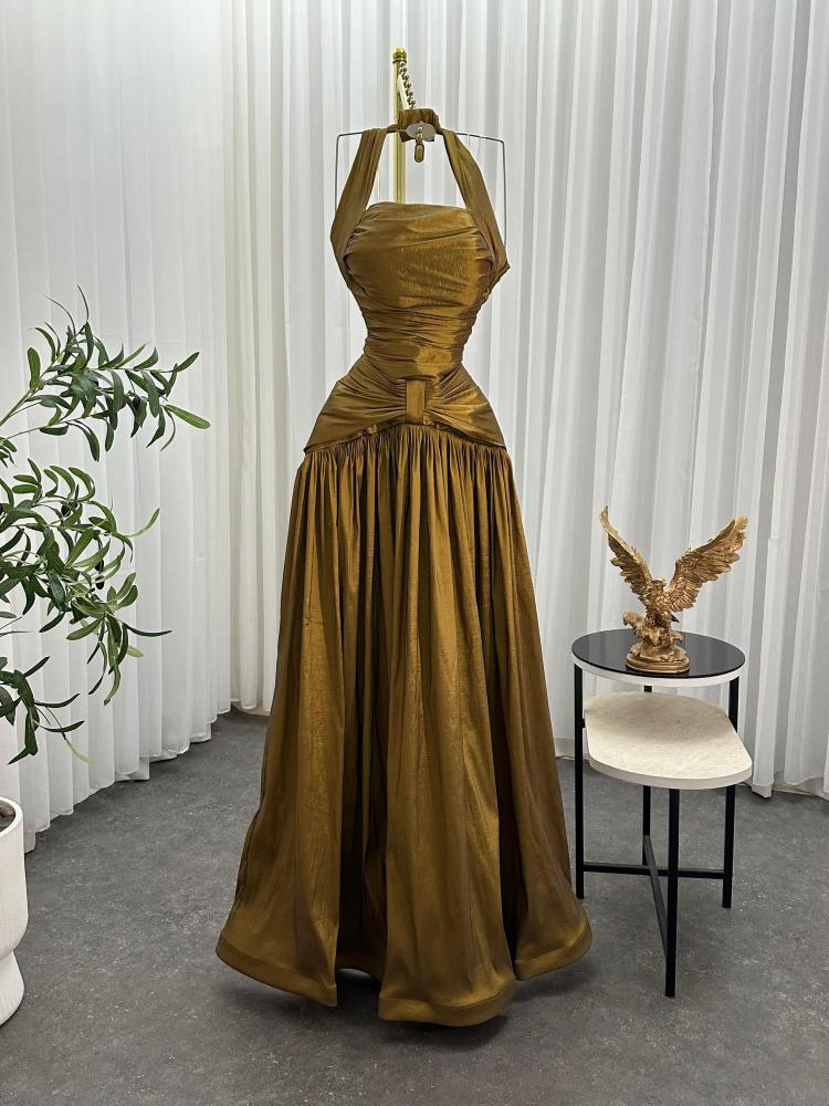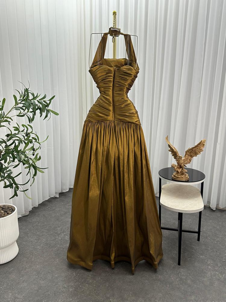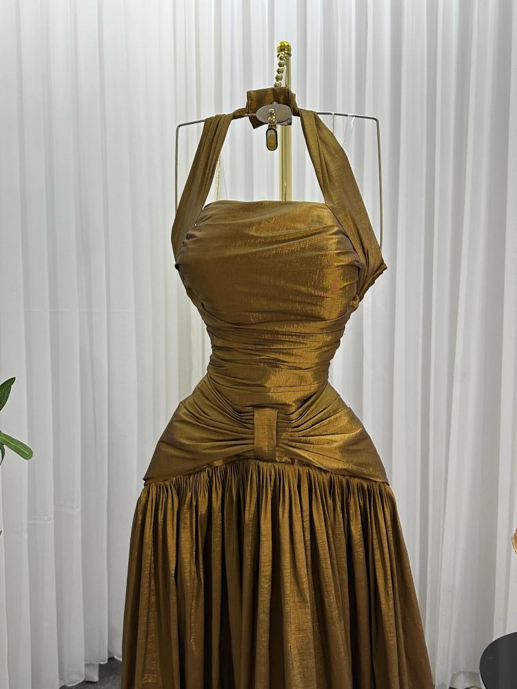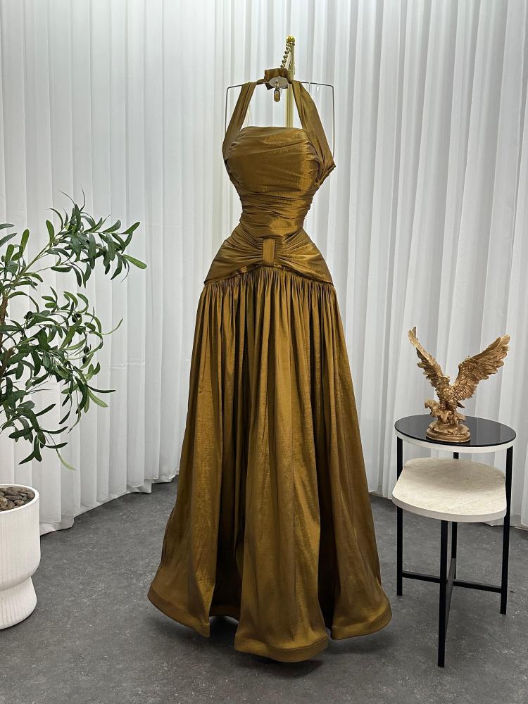 فستان سهره قماش شانطون نحاسي شغل راقي جدا دبل كلوش كسرات من متجر جوهره QN