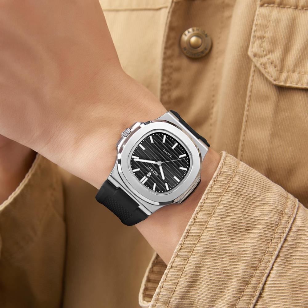 سعر شامل الضريبهساعة رجالية انيقةماكسويل رجالي استيلمكينه سنغافوريمع ضمان سنتين يشمل مكينه ومويه وبطاريه ولونالملحقات علبه وكيس باسم الماركه