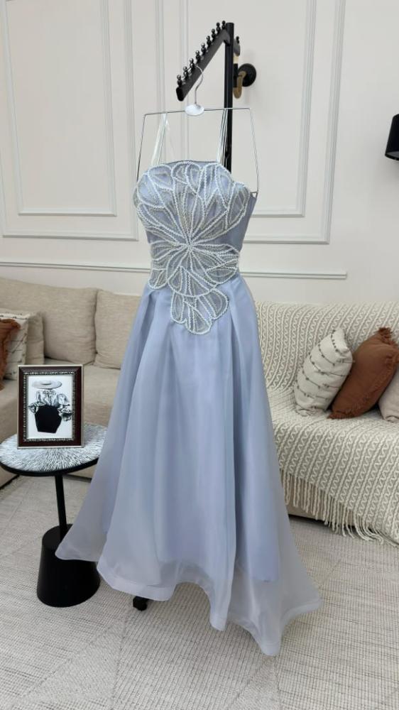 فستان سهره اللون رمادي الخـامة جازار بطانه تفته صدريه تطريز من متجر جوهره BR