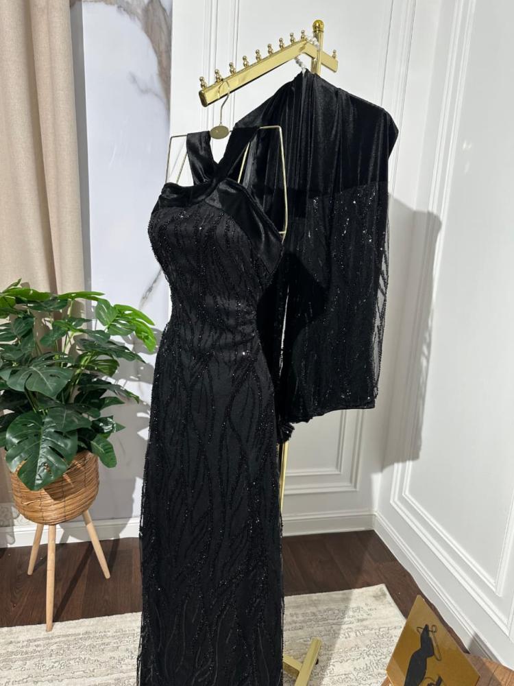 فستان سهره اللون اسود مخمل شك يدوي من متجر جوهره BS