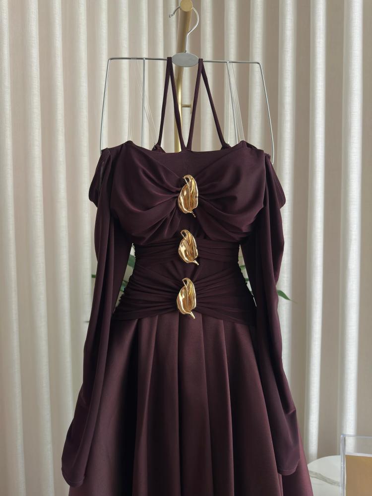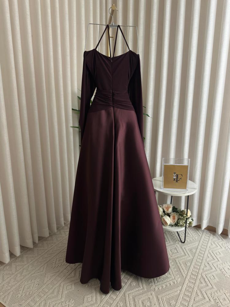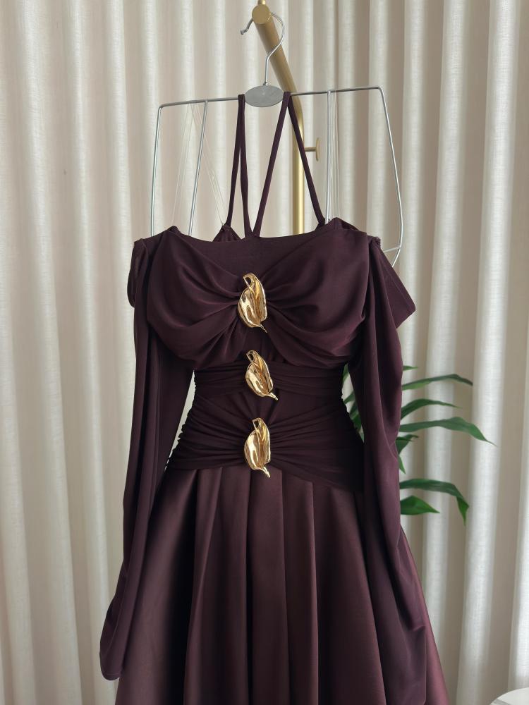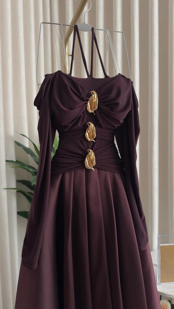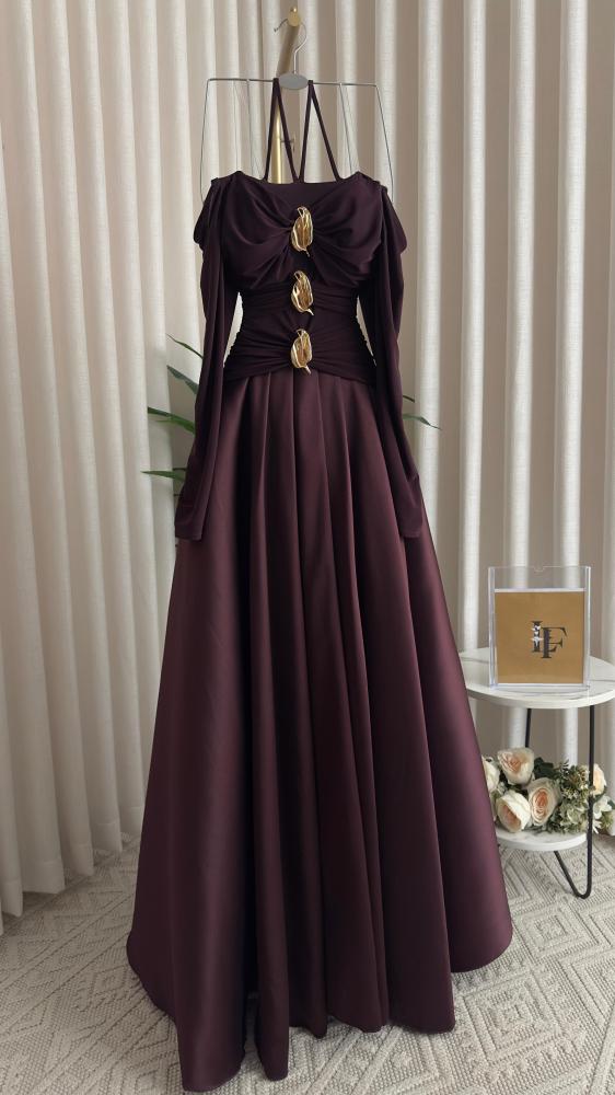 فستان سهره اللون بني الصدريه كرستال تحت ميكادو من متجر جوهره LF
