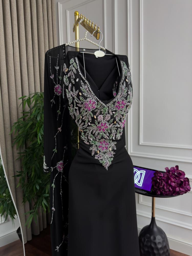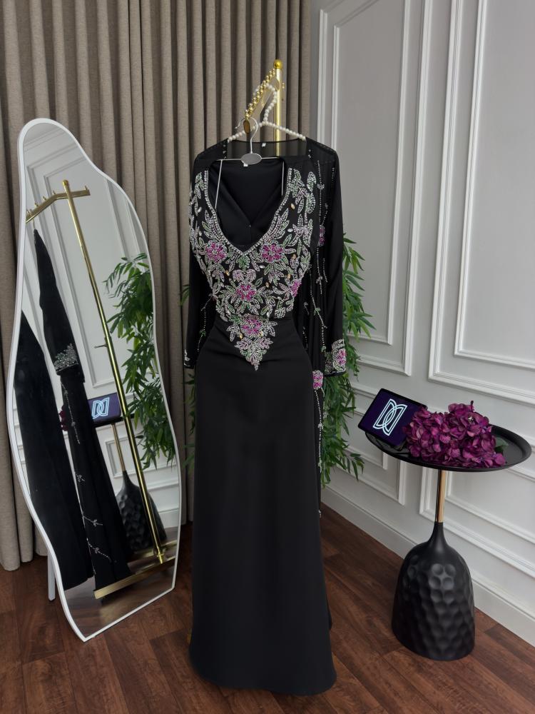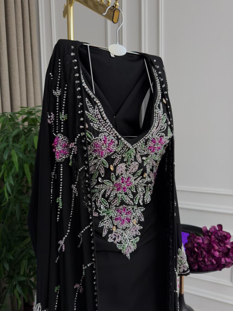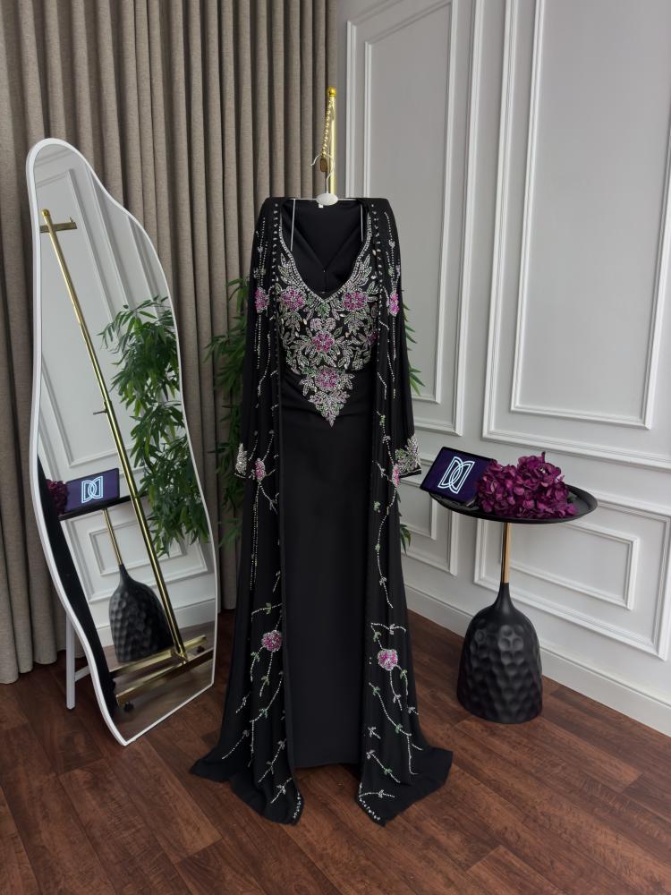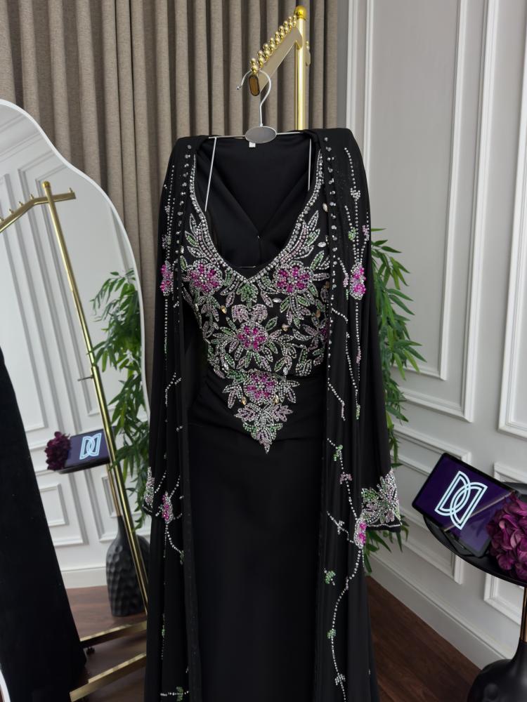 جلابية باربي تطريز يدوي وبشت شيفون تطريز اللون اسود من متجر جوهره D
