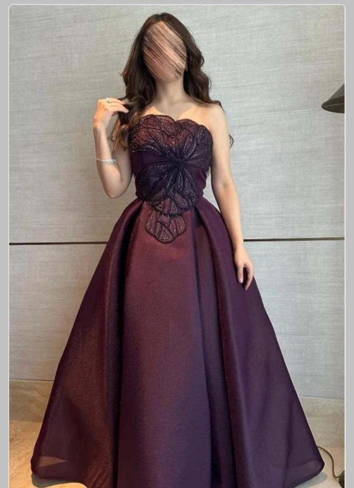فستان سهره اللون عنابي سهره ميكادو روسي تطريز من متجر جوهره D